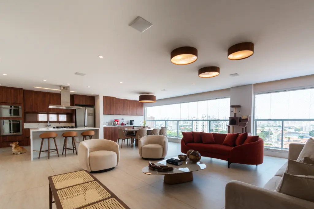 O imóvel é mobiliado e conta com móveis planejados, além de um hall privativo que traz exclusividade e conforto. A cozinha integrada cria um ambiente arejado e acolhedor, ideal para receber amigos e familiares. Para garantir o seu conforto, o apartamento dispõe de ar condicionado central, aquecimento central e uma sacada que proporciona uma vista permanente para a cidade.