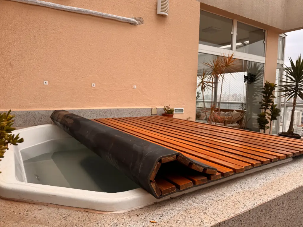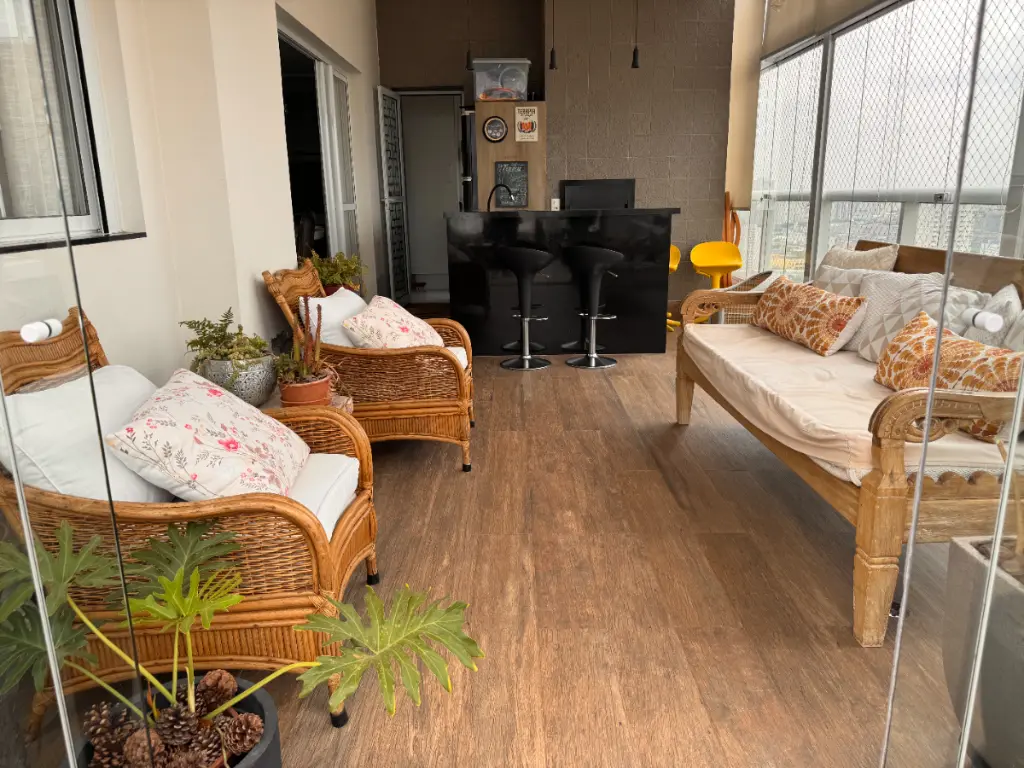 A seleção de acabamentos traduz o cuidado em cada detalhe: piso em madeira maciça nas áreas íntimas, porcelanato em varandas e banheiros, e climatização completa nos principais ambientes. Na área íntima, uma jacuzzi privativa oferece o toque final de exclusividade e relaxamento.