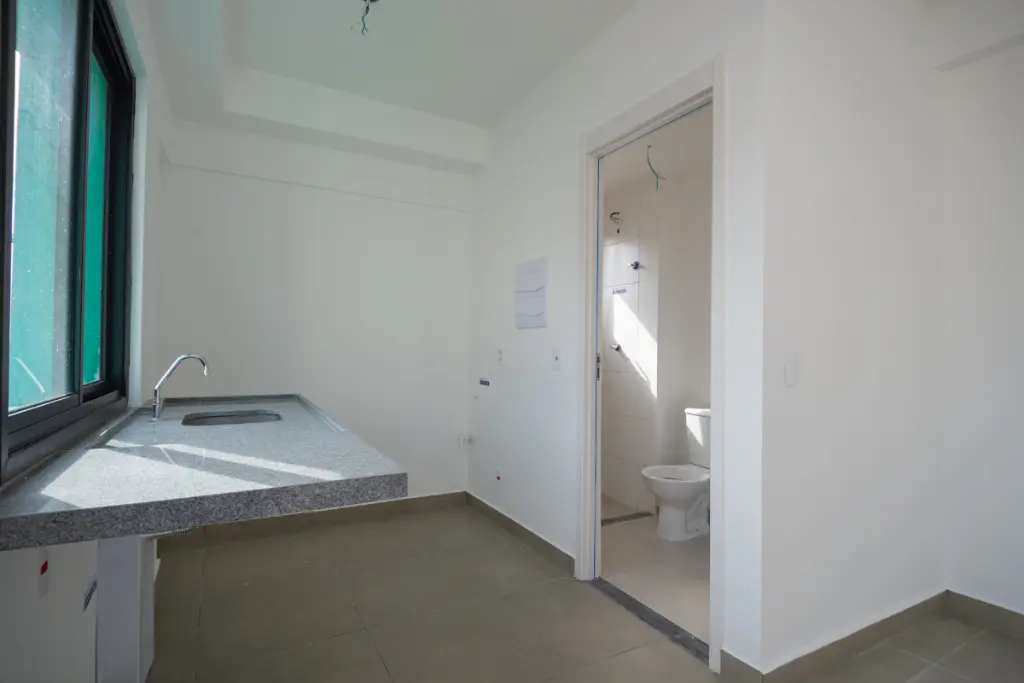 Este apartamento possui um banheiro, um quarto e comodidades como gás encanado, infraestrutura para ar-condicionado e interfone, garantindo praticidade e bem-estar.