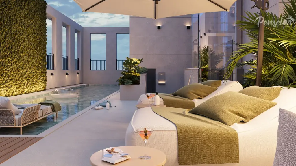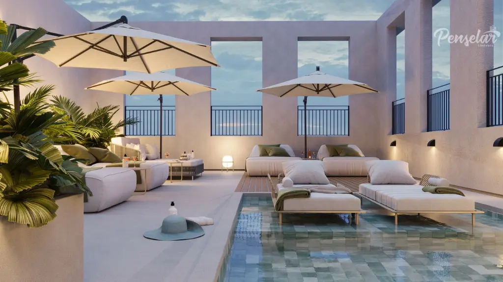 Áreas comuns equipadas e decoradas. Piscina climatizada /