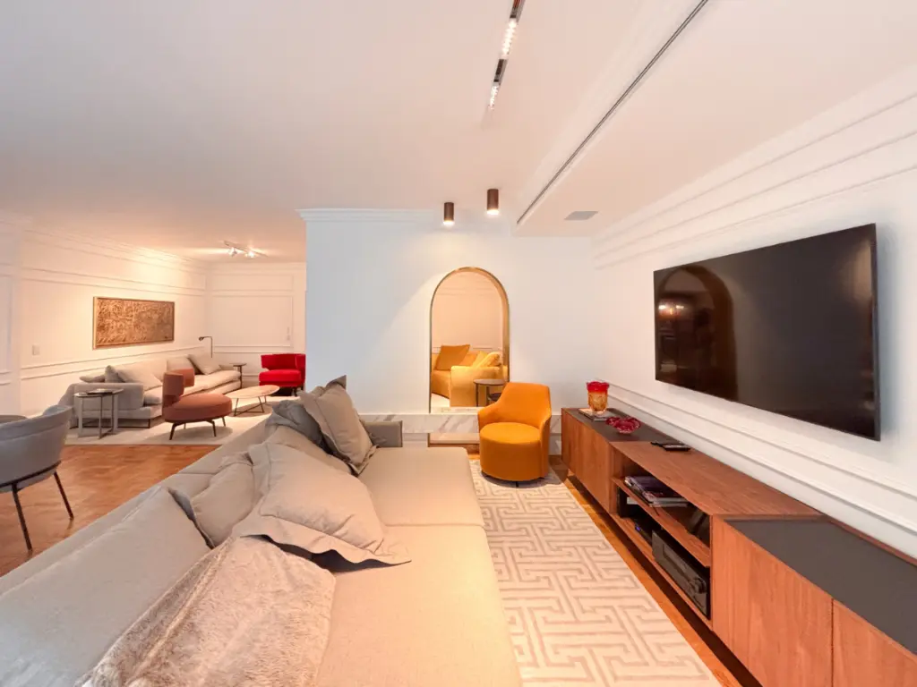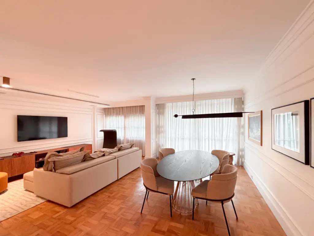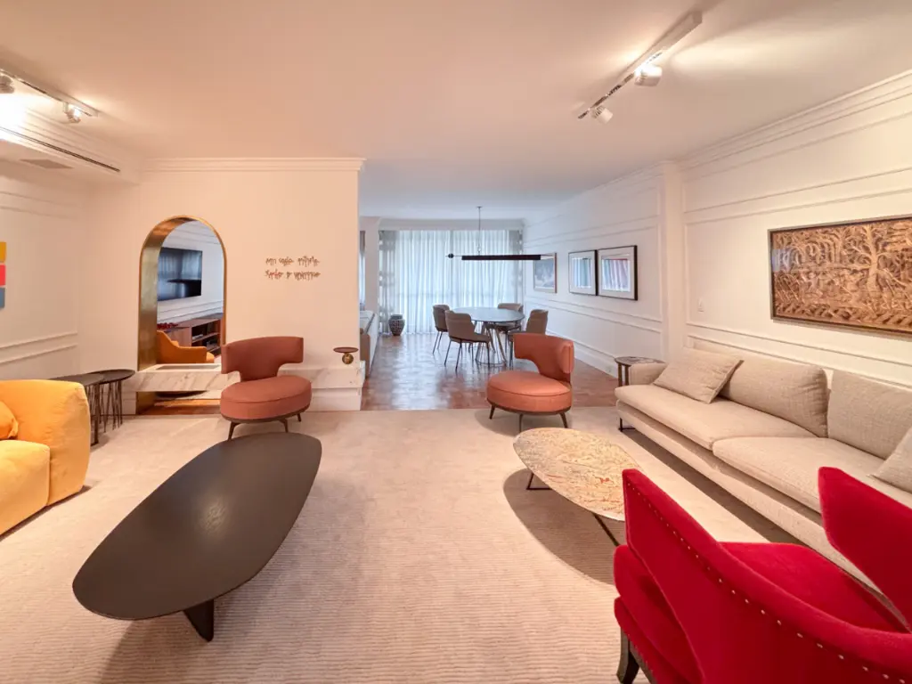 Este apartamento de 190m² na Alameda Tietê é uma coleção cuidadosamente curada de materiais nobres, design autoral e conforto absoluto - em um dos trechos mais planos e convenientes dos Jardins. Um projeto de interiores assinado por Jaína Masciarelli que transforma cada ambiente em uma experiência sensorial única.