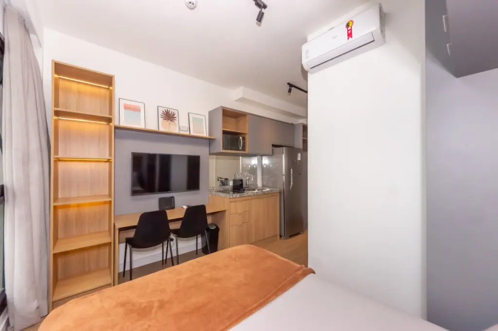 Você acabou de encontrar o melhor investimento na Vila Mariana! Condomínio novíssimo, entregue no final de 2023, esse studio possui 21m² já pronto para residir/locar. Todo planejado em marcenaria, essa unidade está repleto de armários, já possui ar condicionado instalado, mesa para home office, pia com gabinete e repleto de móveis e eletrodomésticos, como: cama de casal, televisão, cooktop, microondas, geladeira e muito mais, além de um amplo banheiro acessível! O condomínio possui portaria 24h e lazer no último andar com linda vista, possuindo uma lavanderia completa, academia moderna e um rooftop aberto com lareira automatizada e espaço gourmet com churrasqueira! Sua localização é perfeita para fazer tudo a pé: na esquina da padaria Vila Grano, apenas duas quadras do Shopping e metrô Santa Cruz (linha azul), 10 minutos andando do metrô Hospital São Paulo (linha lilás), ao lado da Universidade Federal de São Paulo (UNIFESP), 2km em linha reta até o Parque Ibirapuera, além de diversos restaurantes, mercado, farmácia, academia e outros comércios essenciais no em torno. Essa região é referência na área da saúde. Entre em contato e agende sua visita, não perca essa oportunidade!