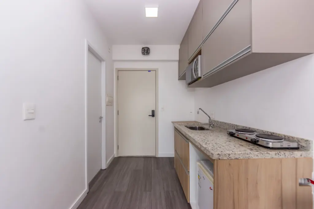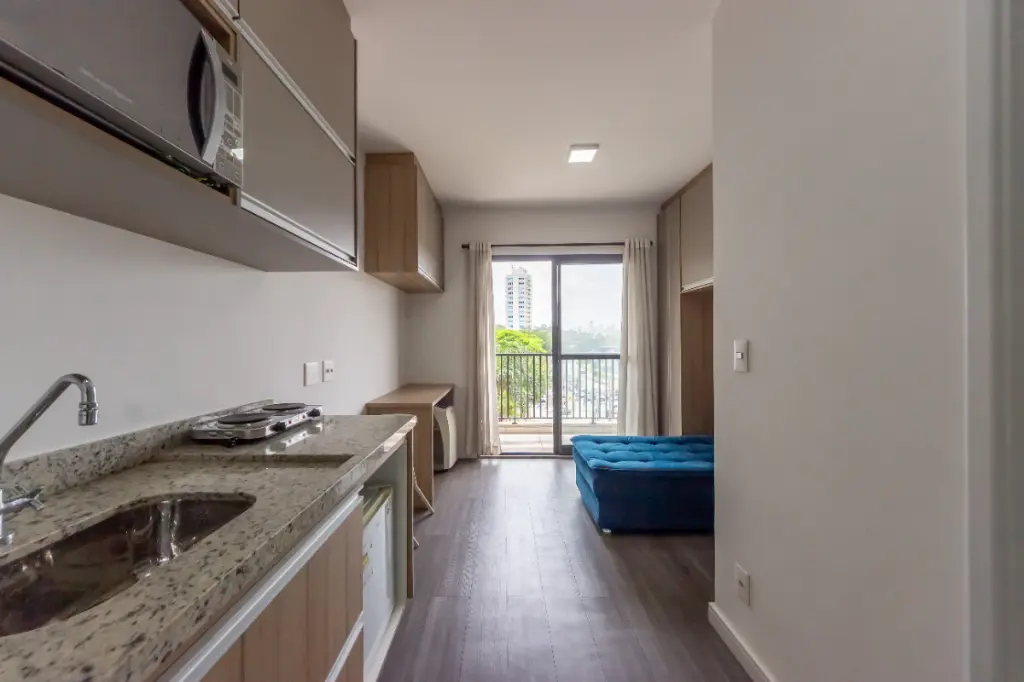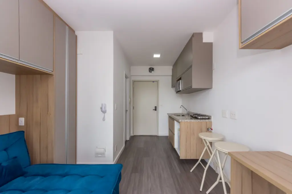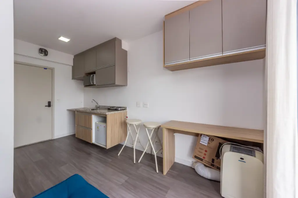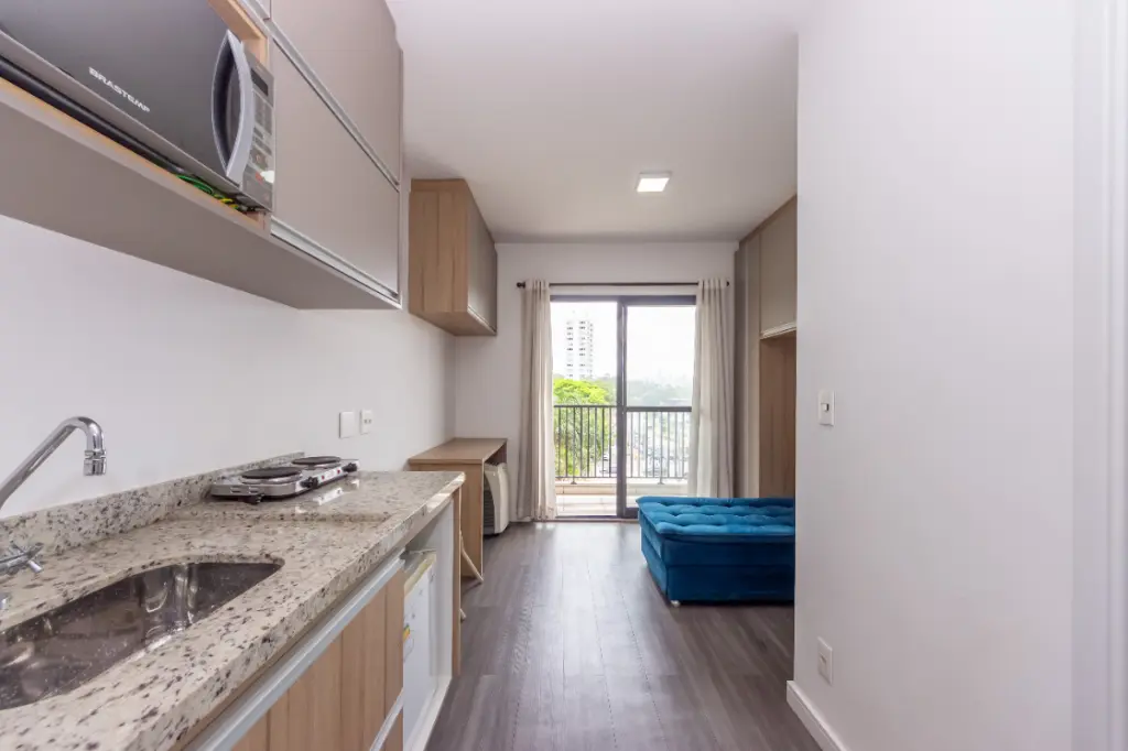 Este estúdio é um excelente investimento na metrópole, proporcionando acesso conveniente a uma variedade de transportes públicos, incluindo ônibus, estação ferroviária e metrô Brooklyn a poucos metros de distância, ideal para aqueles que levam uma vida dinâmica e conectada. Entre as suas inúmeras comodidades, você encontrará uma piscina semi-olímpica, espaço fitness, e uma elegante área de lazer para desfrutar ao máximo o seu tempo livre.