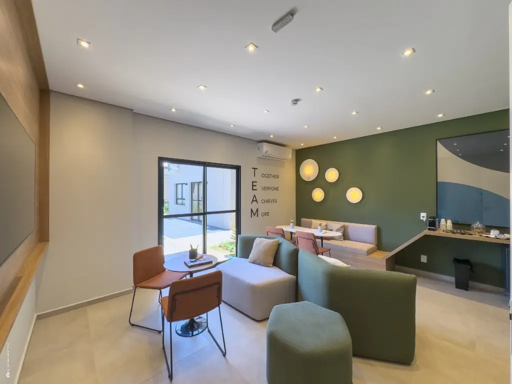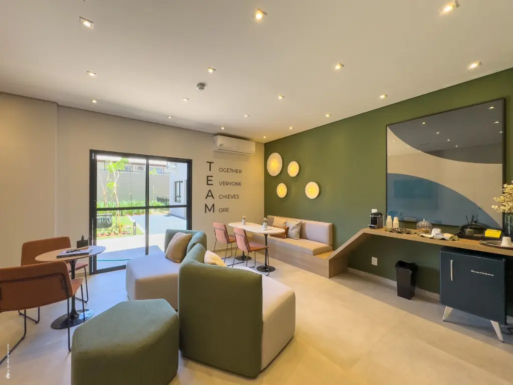 Além disso, o empreendimento conta com sistemas sustentáveis, como o aproveitamento da luz natural e soluções de economia de água, características que agregam valor ao projeto.
