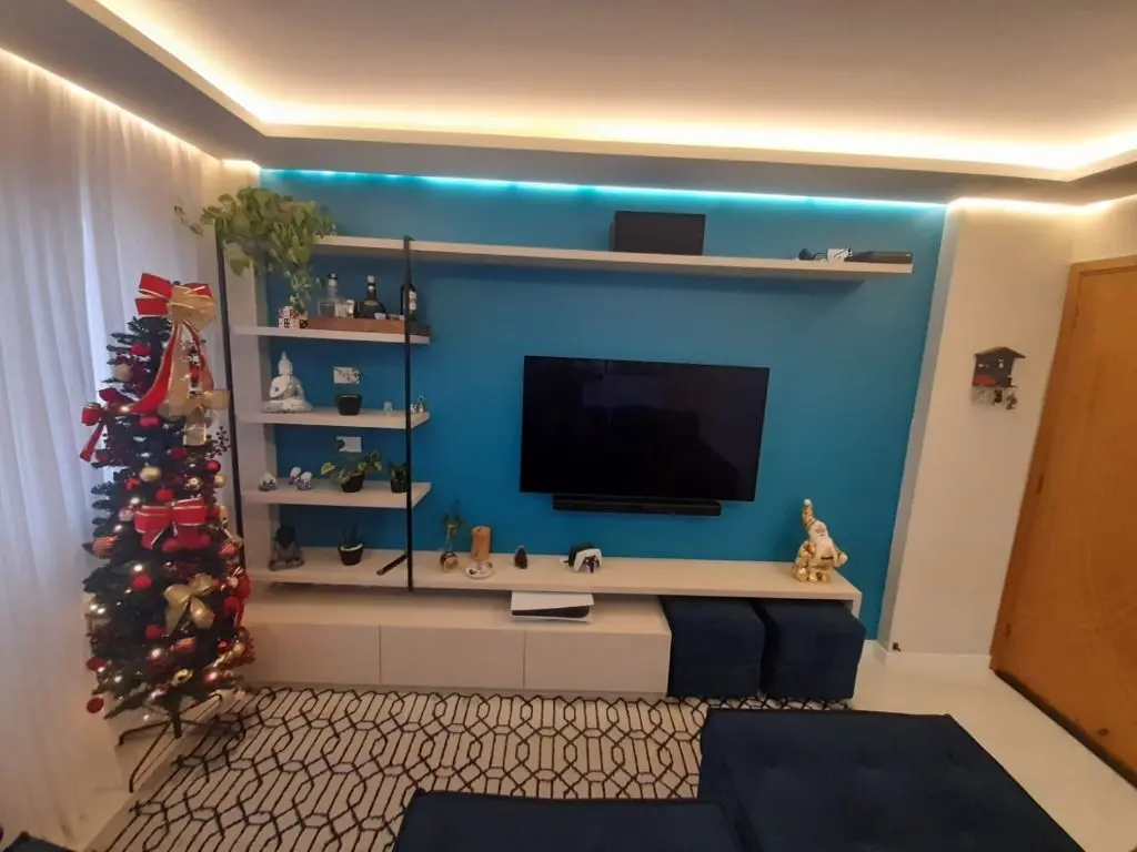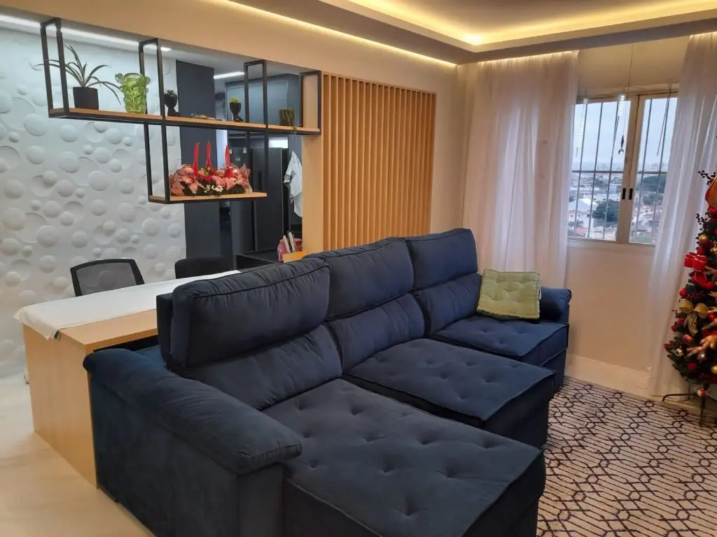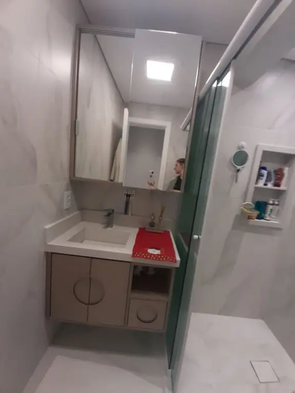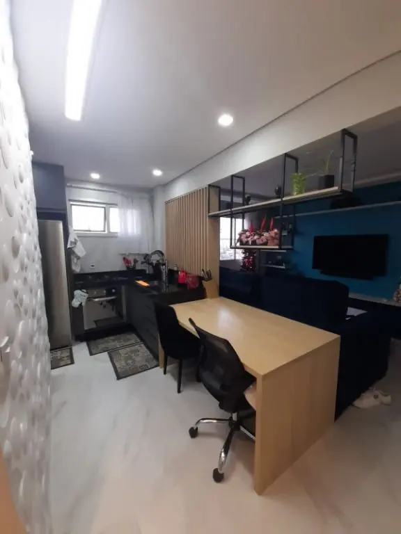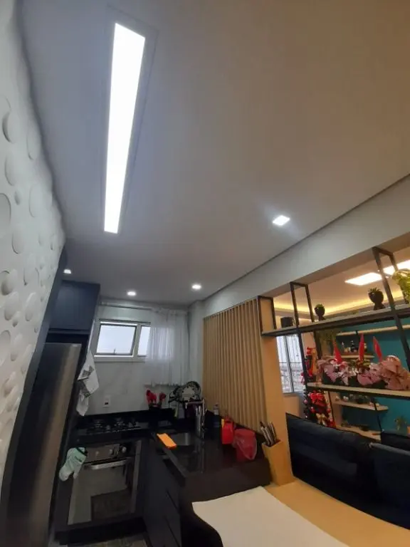 Ótimo apartamento sendo 2 dormitórios com armários em teto rebaixado em gesso, 1 banheiro com box de vidro e armários, 1 lavabo, sala com sanca de gesso e luzes de led, cozinha toda com armários planejados, área de serviço, lavabo e 1 vaga de garagem.