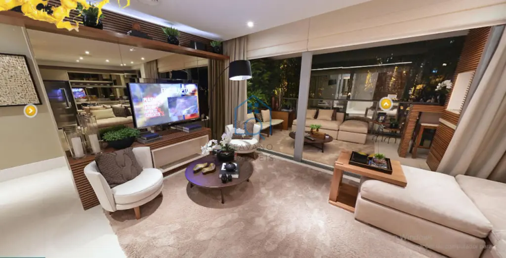 Apartamento mobiliado 128m² possui 2 suítes, 3 vagas, ambiente espaçoso e arejado.