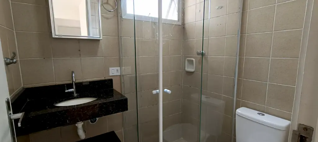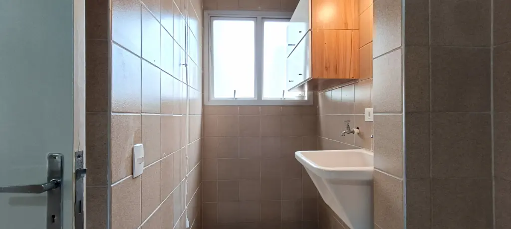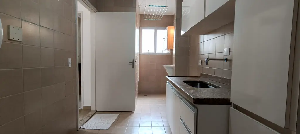 O dormitório possui armário embutido, garantindo organização e aproveitamento inteligente do espaço. O banheiro é equipado com box blindex, armário e chuveiro elétrico. A cozinha é funcional, com revestimento e armários planejados, além de área de serviço independente com armário e varal de teto, oferecendo ainda mais praticidade no dia a dia.