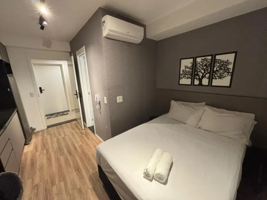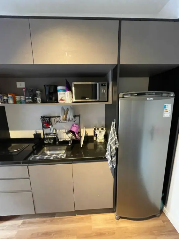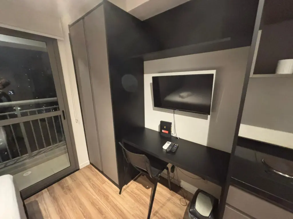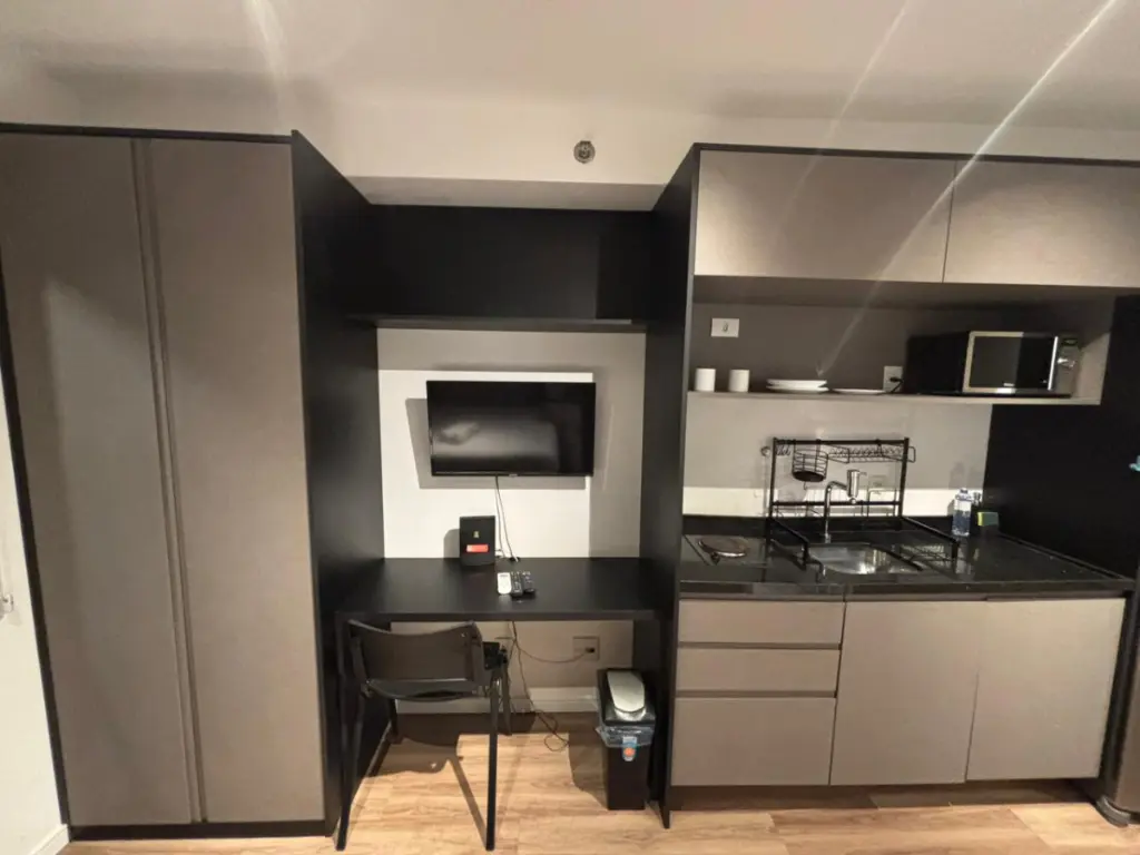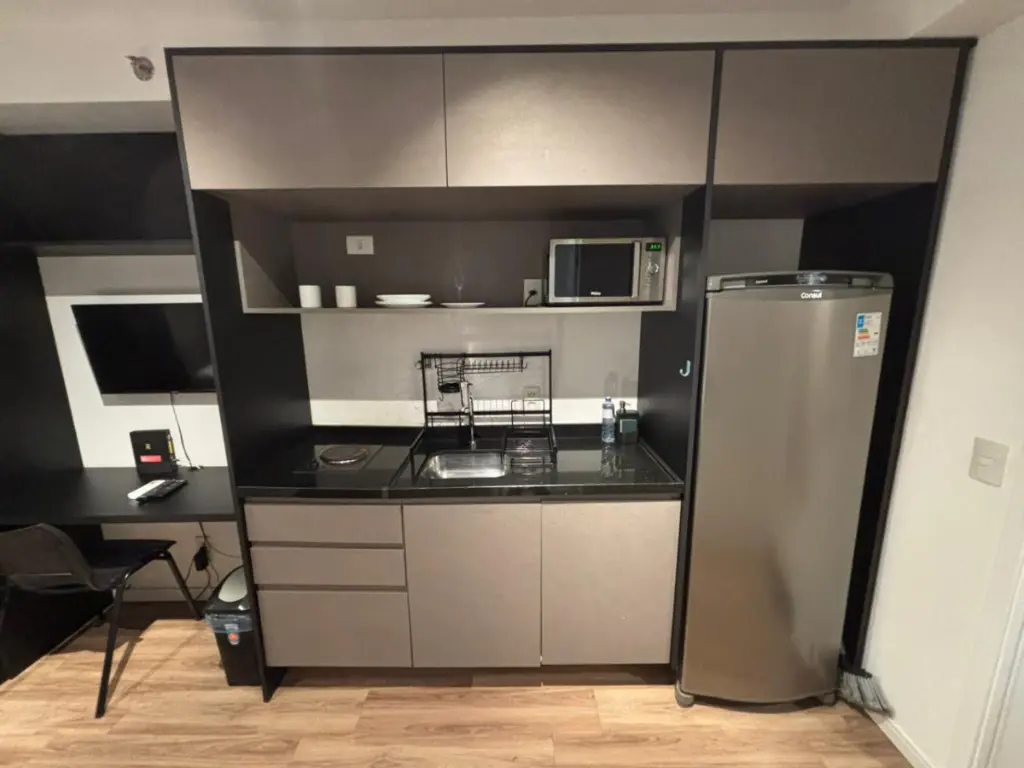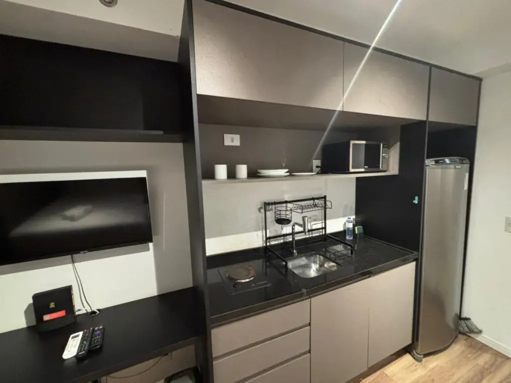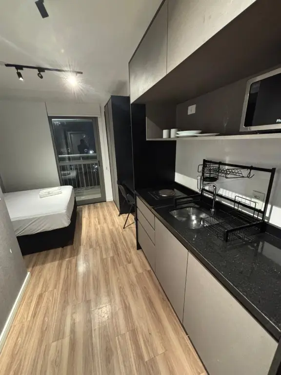 - Layout: Quarto e cozinha integrados