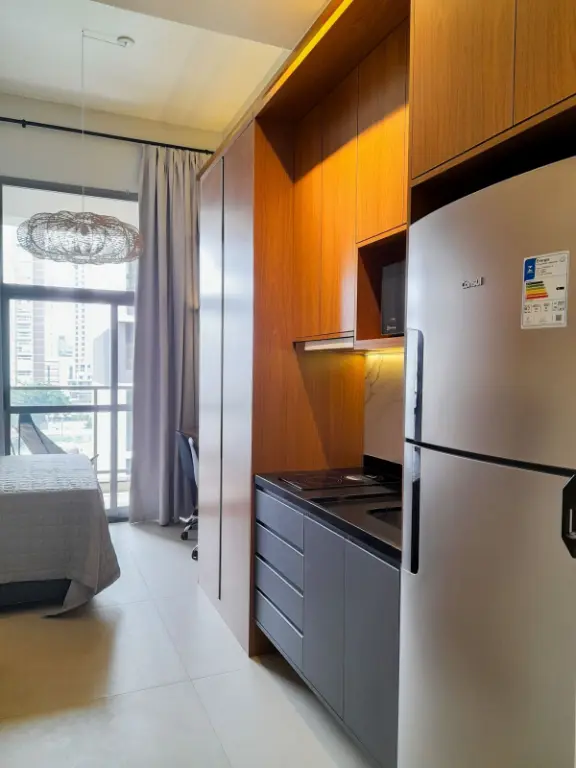 Studio moderno e funcional no Haus Mitre Residences, localizado no Brooklin, a poucos passos da estação Brooklin do metrô, ideal para quem busca praticidade e mobilidade em uma das regiões mais valorizadas de São Paulo. A unidade conta com planta inteligente que integra os ambientes, excelente iluminação natural e acabamento contemporâneo, proporcionando conforto e otimização de espaço no dia a dia. O condomínio oferece infraestrutura completa com lazer e serviços, incluindo piscina, academia, coworking, lavanderia coletiva e portaria 24 horas, unindo conveniência, segurança e um estilo de vida urbano moderno, perfeito tanto para morar quanto para investir.