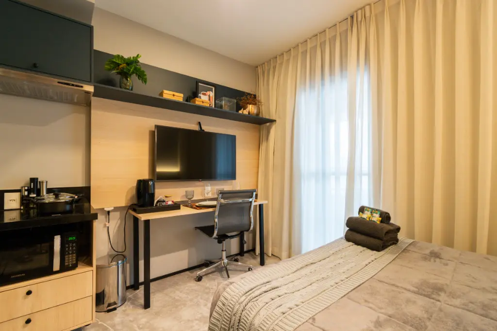 Com a praticidade e o estilo de vida urbano em mente, este estúdio oferece um ambiente bem planejado, maximizando cada metro quadrado para proporcionar conforto e funcionalidade. O layout permite uma excelente circulação de ar e luz natural, criando um espaço convidativo e arejado. A disposição inteligente dos móveis e a elegância do acabamento tornam este imóvel uma opção perfeita para jovens profissionais, estudantes ou investidores em busca de um rendimento seguro.