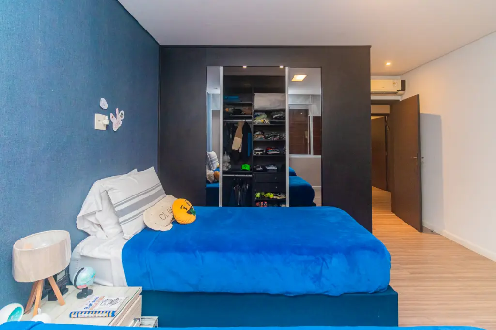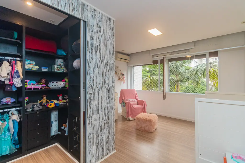 A área íntima é um grande destaque: são quatro dormitórios amplos, todos com closet, um diferencial raro e muito valorizado, proporcionando organização, conforto e praticidade no dia a dia.