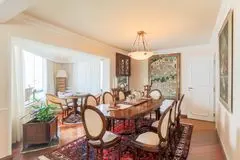 Piso em tábua de madeira e mármore nos banheiros.