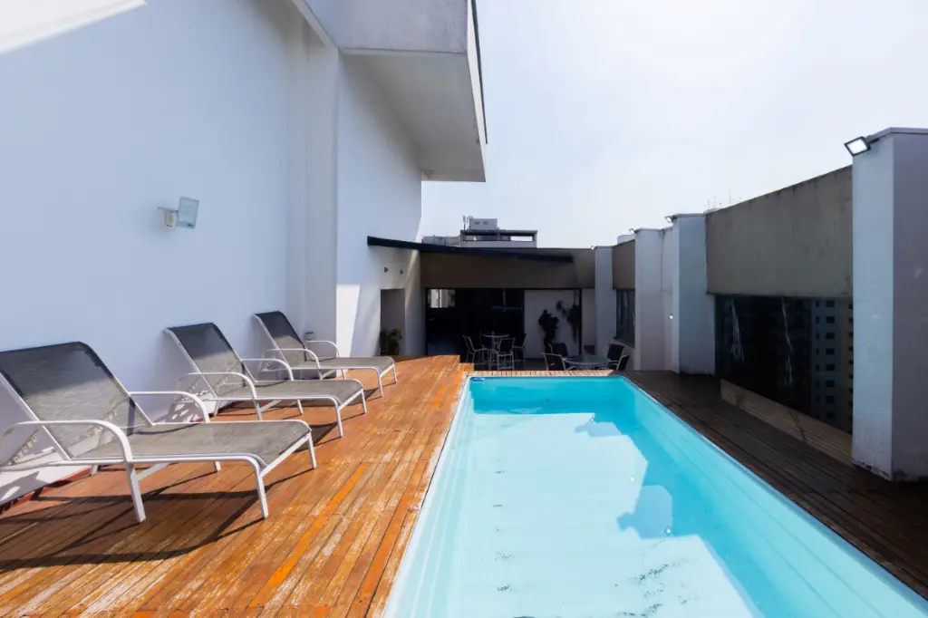 Área de lazer exclusiva com piscina privativa, ofurô, churrasqueira e vista panorâmica do Campo Belo