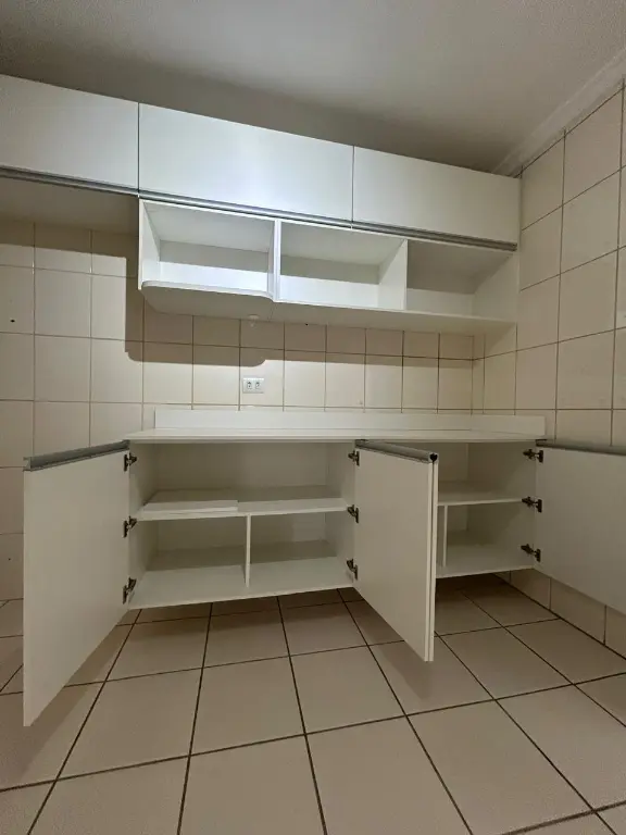 A sala, para dois ambientes, é iluminada, com excelente ventilação e vista aberta. A cozinha, generosa em tamanho, possui armários em ótimo estado, proporcionando praticidade e funcionalidade. Integrada à cozinha, a área de serviço é arejada e funcional, e ainda conta com um banheiro de serviço.