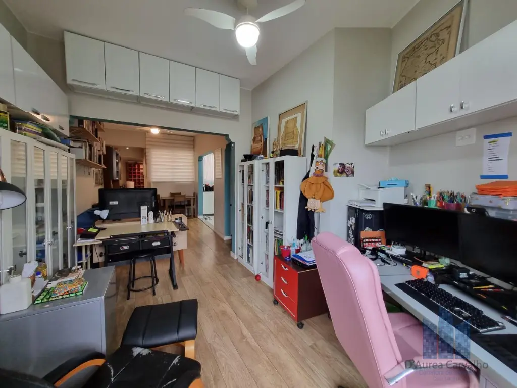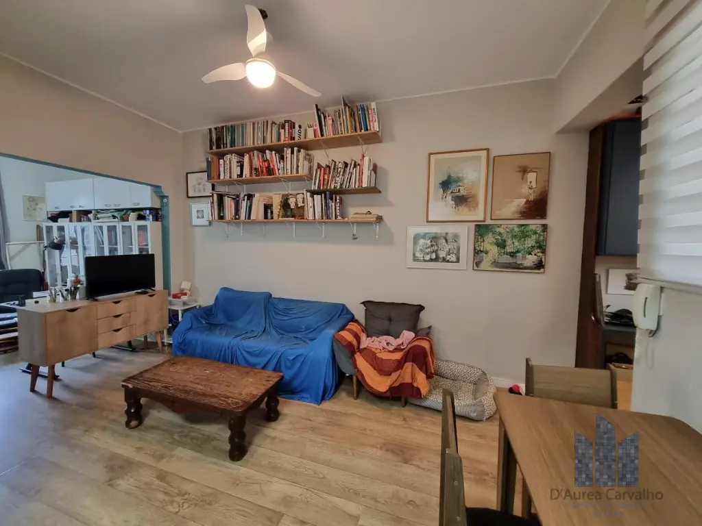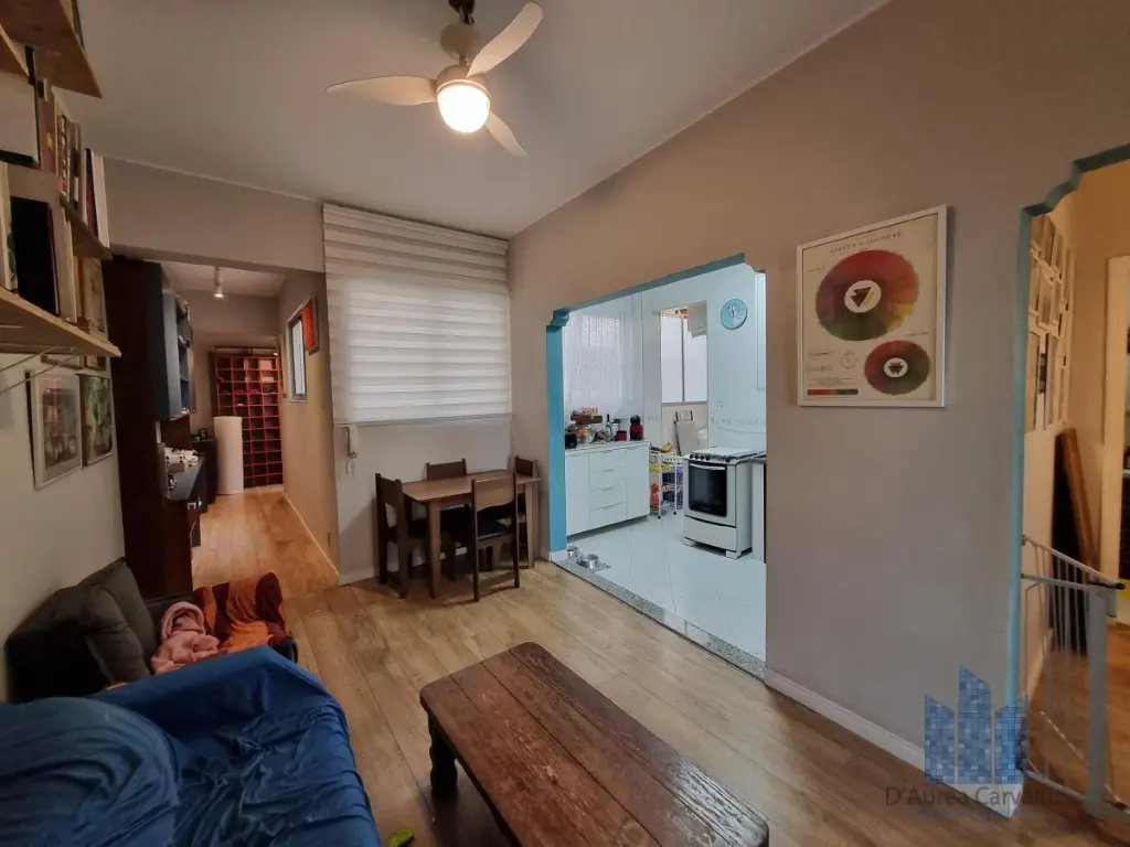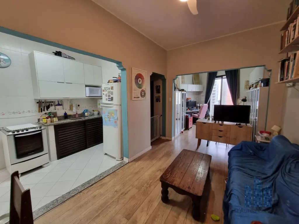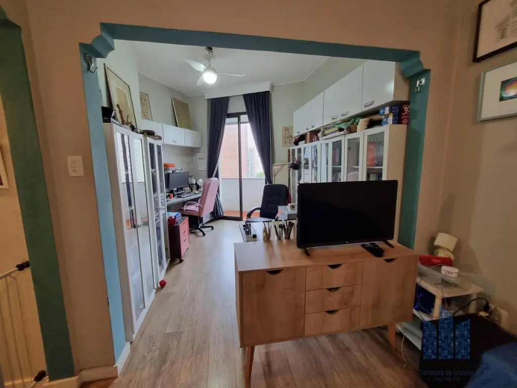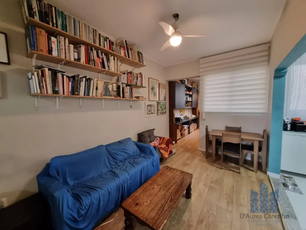 Apartamento localizado no quinto andar com boa ventilação e luminosidade. Possui 1 dormitório, living amplo para dois ambientes integrado à varanda, escritório, banheiro social, cozinha integrada ao living e área de serviço. Não há vaga de garagem.