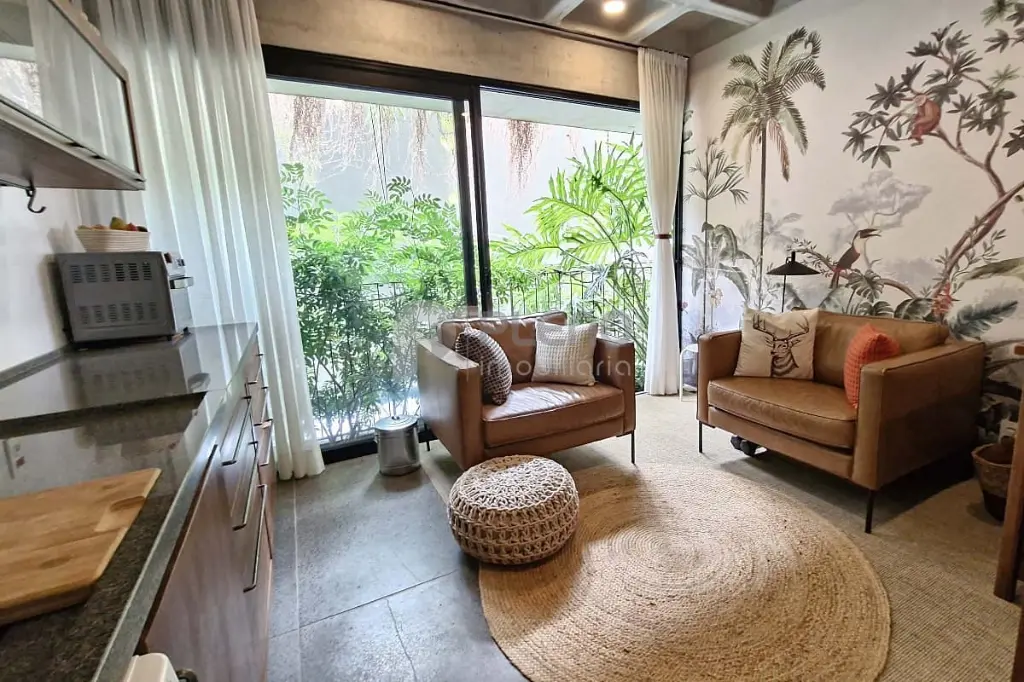 Esta unidade está pronta para morar, e conta com armários na cozinha e ar-condicionado já instalado na sala e no quarto . A sala é ampla e integrada à cozinha, otimizando o espaço e garantindo praticidade no dia a dia. O dormitório é aconchegante e cercado por verde, enquanto o banheiro compartimentado oferece excelente aproveitamento de espaço. Vale destacar que o apartamento é bem silencioso, perfeito para quem gosta de sossego.