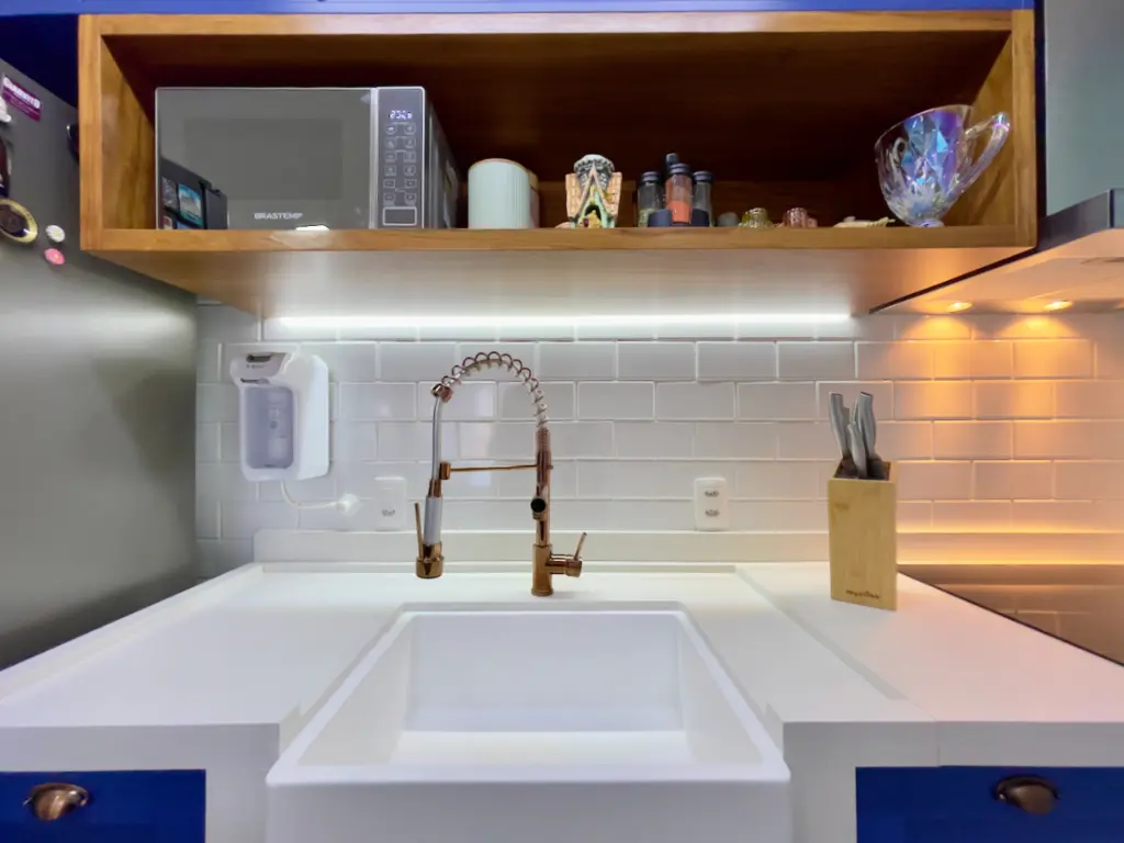 Na cozinha, cada detalhe foi pensado para unir beleza e funcionalidade. As bancadas em quartzo branco absoluto transmitem sofisticação, enquanto a pia em estilo farm sink agrega personalidade e praticidade ao ambiente. Nos banheiros e lavanderia, o mesmo padrão de qualidade foi seguido, garantindo elegância e durabilidade em todos os espaços.