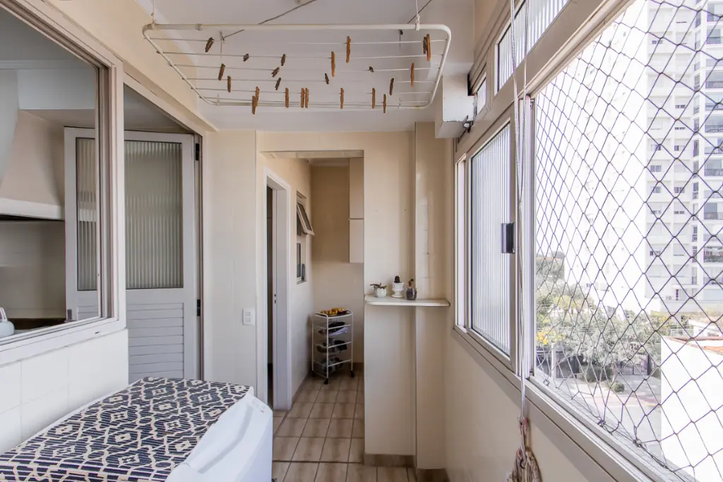 ?? A área de serviço é completa, separada e bem ventilada, com banheiro de apoio.