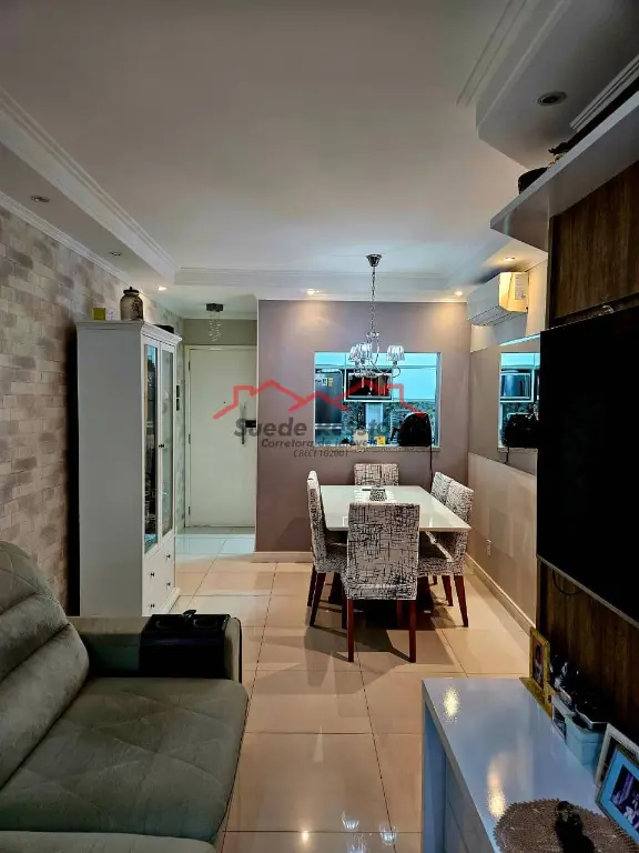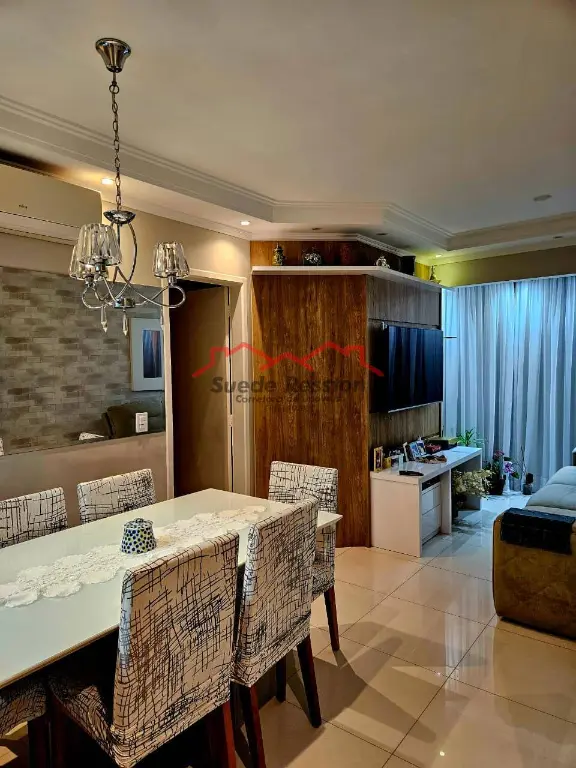 A sala com ar condicionado, com piso em porcelanato, espelho, móveis planejados, espaçosa para dois ambientes oferece excelente iluminação natural e iluminação planejada. Sacada ampliada para a sala.