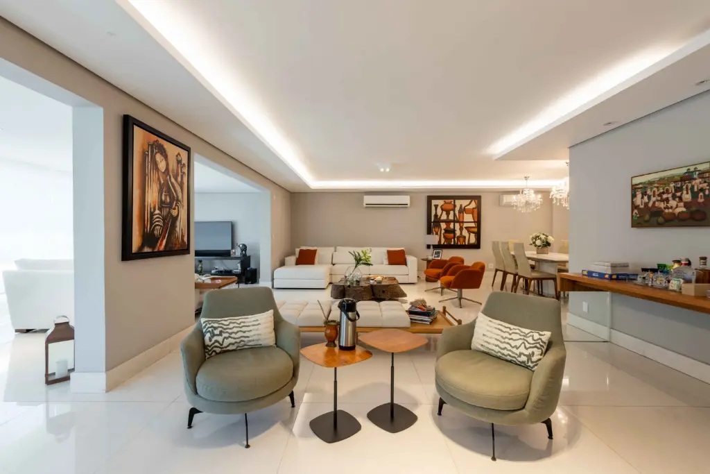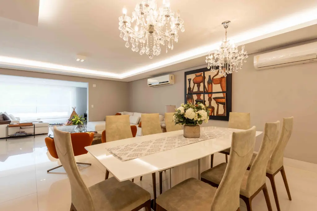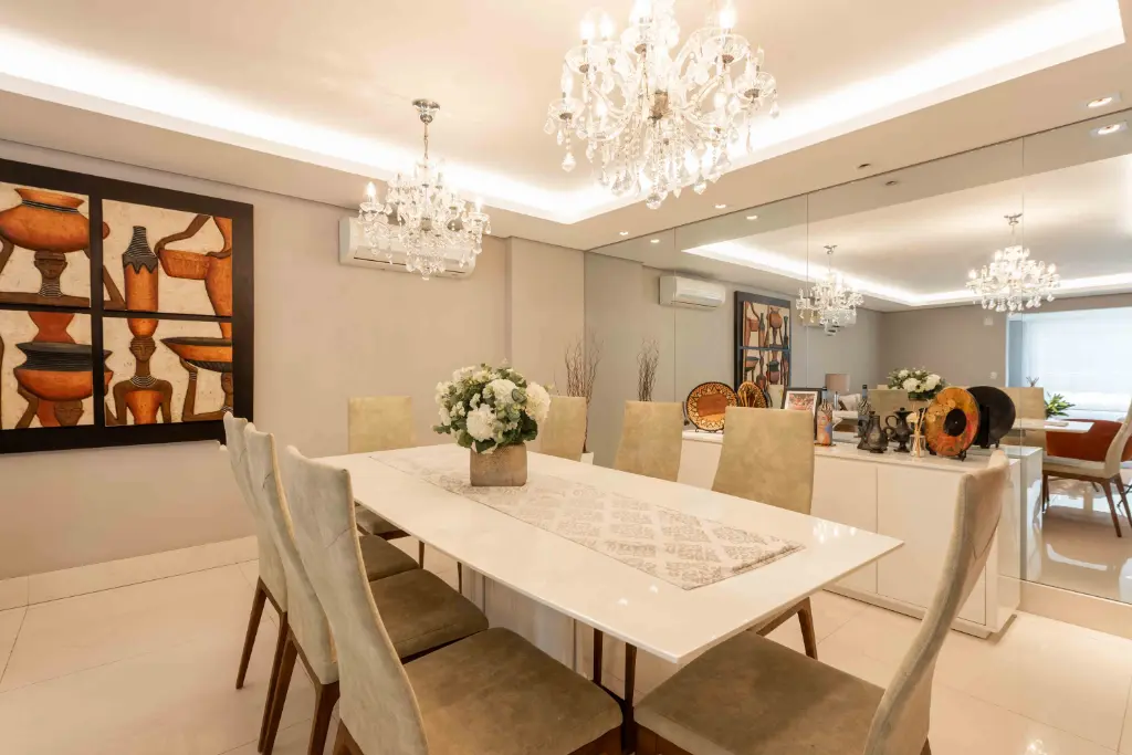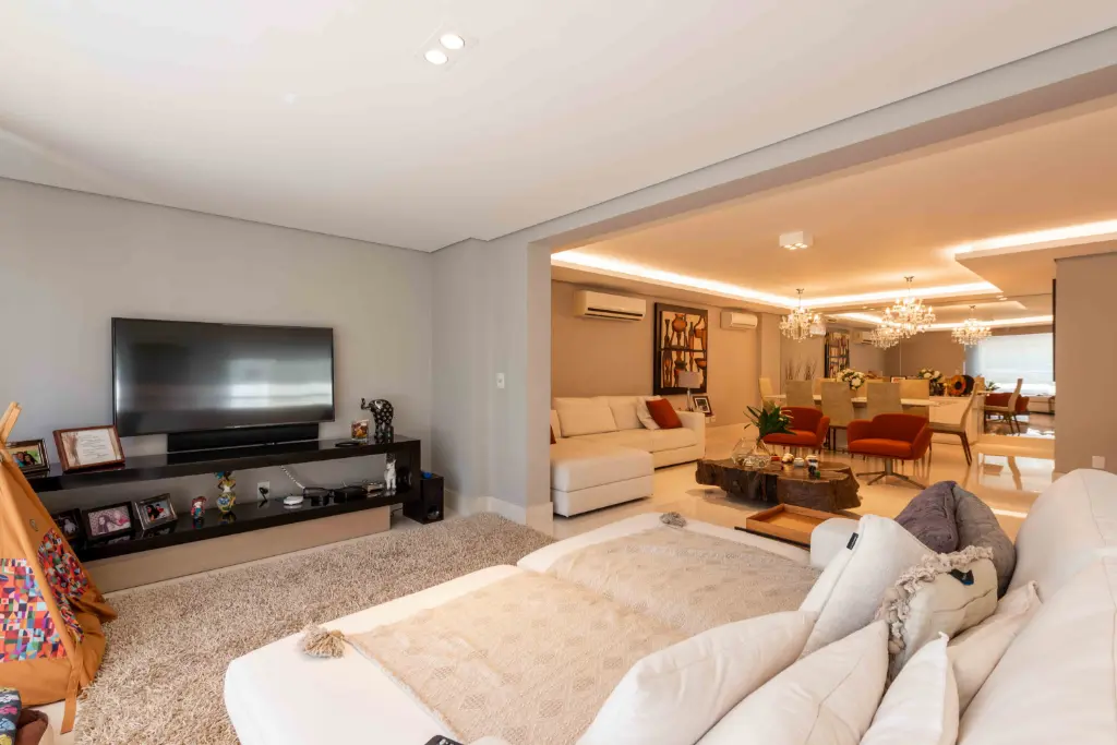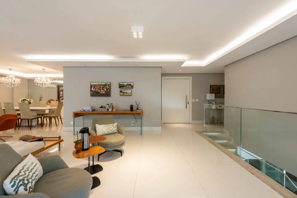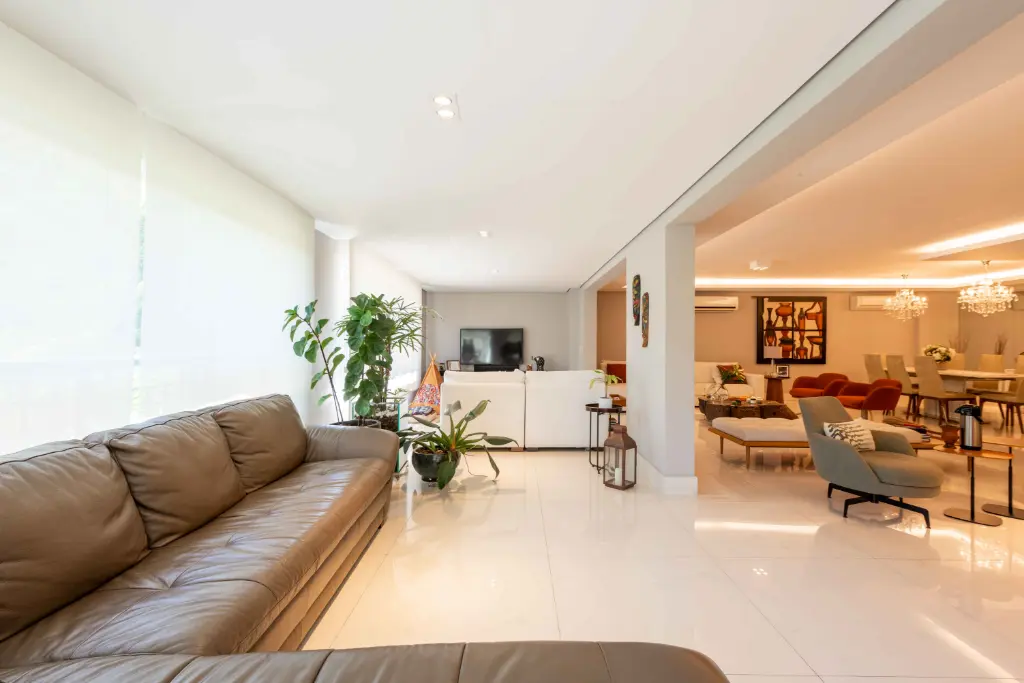 São 5 suítes espaçosas, living para vários ambientes, sala de jantar, home theater e área social voltada para o terraço, ideal para receber família e amigos com elegância. O apartamento conta ainda com cozinha planejada, copa, dependência completa de serviço e depósito no subsolo, garantindo praticidade no dia a dia.