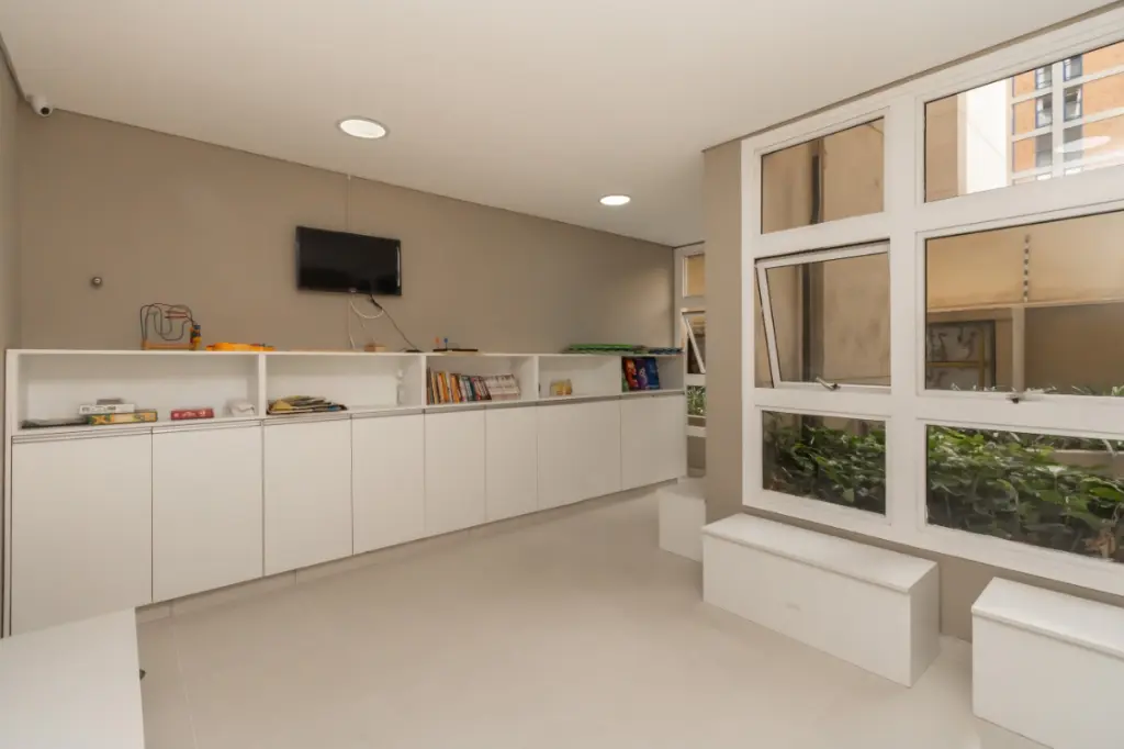O condomínio, para além de sua localização estratégica, oferece um ambiente tranquilo e seguro, provido de portaria 24 horas. As áreas de lazer incluem uma convidativa piscina, situada em um amplo deck central, além de uma piscina específica para crianças. A brinquedoteca, recentemente renovada e com ótimo acabamento, proporciona um espaço lúdico e seguro para as crianças. O amplo salão de festas é ideal para eventos sociais. A presença de academia e sauna seca complementam as opções de lazer e bem-estar disponíveis aos moradores.
