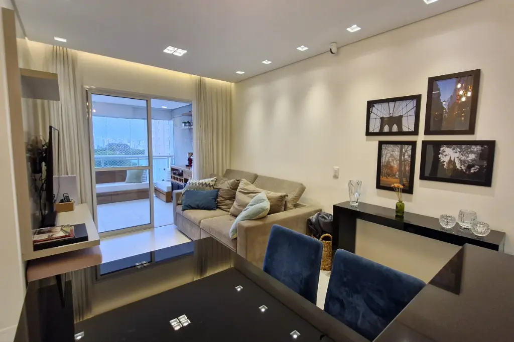 Imagine chegar em casa e sentir que tudo foi pensado para você? Esse apartamento é o equilíbrio perfeito entre a praticidade e o aconchego. São 64m² bem distribuídos: sala para 2 ambientes com ampla varanda envidraçada, cozinha americana repleta de armários e dois quartos aconchegantes, sendo 1 suíte, com planejados e acabamentos impecáveis.