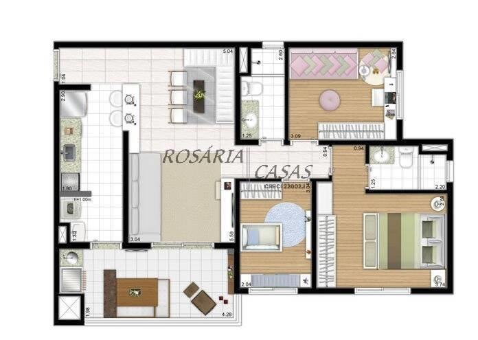 VENDO APTO DE 02 dormitórios sendo 01 suíte, sala ampliada para 03 ambientes, porém reversível para o terceiro dormitório, varanda gourmet envidraçada integrada a sala de jantar e sala de estar, cozinha e área de serviço, teto rebaixado e com 02 vagas de garagem