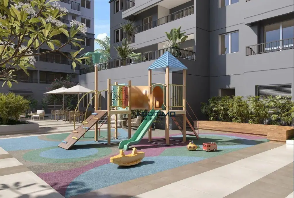 Infraestrutura de lazer completa com piscina, sports bar, 2 churrasqueiras a carvão, quadra poliesportiva gramada, atelier de artesanato e costura, espaço bem-estar, sollarium, praça de estar, pet place, salão de jogos, espaço para feira livre, espaço influencer, dog wash, espaço luau, coworking para trabalho compartilhado, horta, playground baby e juvenil, coworking para aulas e reuniões particulares, deck molhado, academia interna e externa integradas.