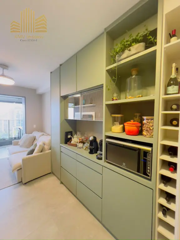 Maravilhoso apartamento de 1 dormitório, todo mobiliado com armários planejados, bela sala com sacada, banheiro com box, cozinha moderna com armários e com 1 vaga de garagem com depósito no subsolo.