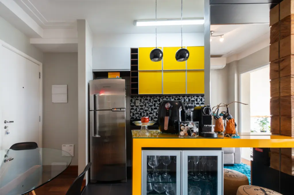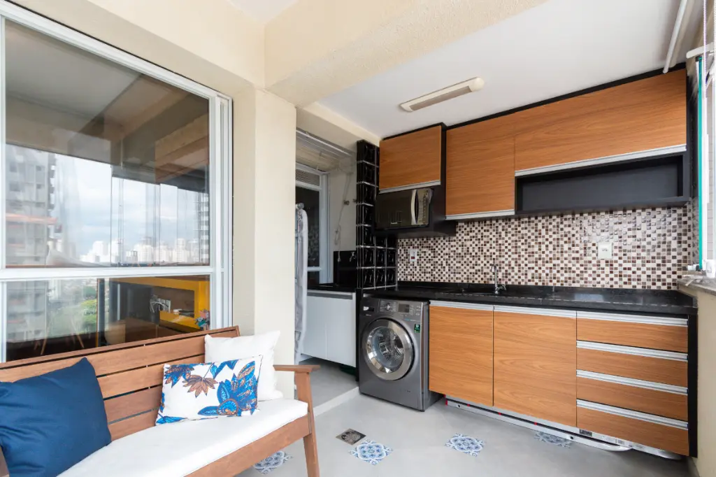 Totalmente mobiliado com móveis planejados, decoração moderna e de bom gosto Ambientes e Mobiliário Incluídos - Cozinha completa com geladeira frost free, micro-ondas, cooktop, forno elétrico, coifa e adega.