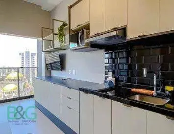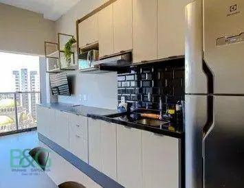 Já mobiliado, com móveis planejados e piso em porcelanato, além de oferecer infraestrutura para ar-condicionado, aquecimento central, gás encanado, área de serviço e interfone.