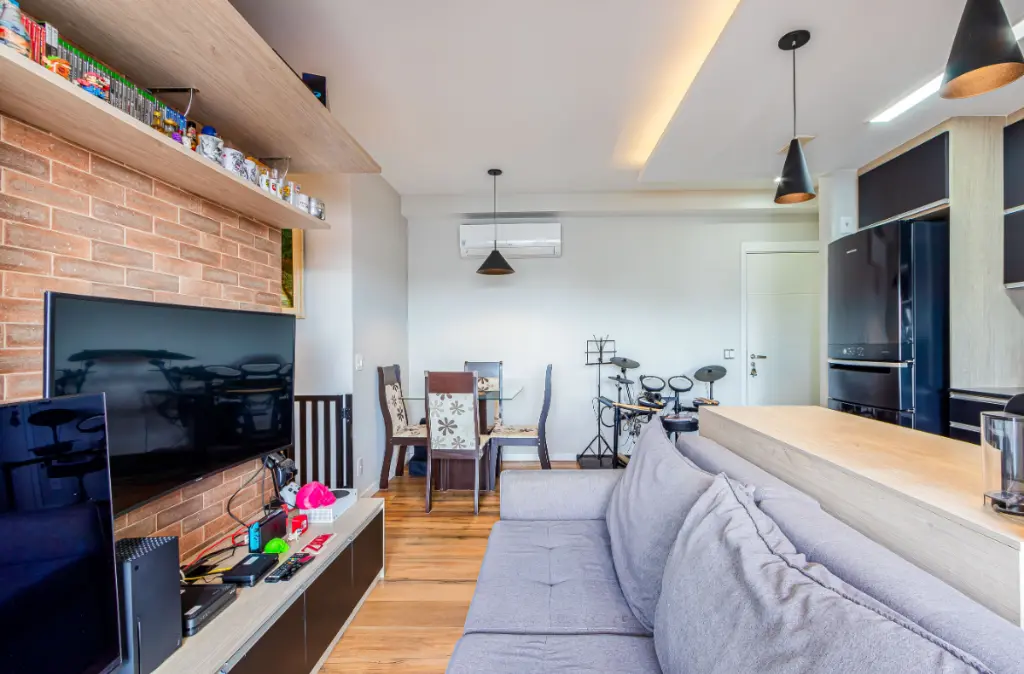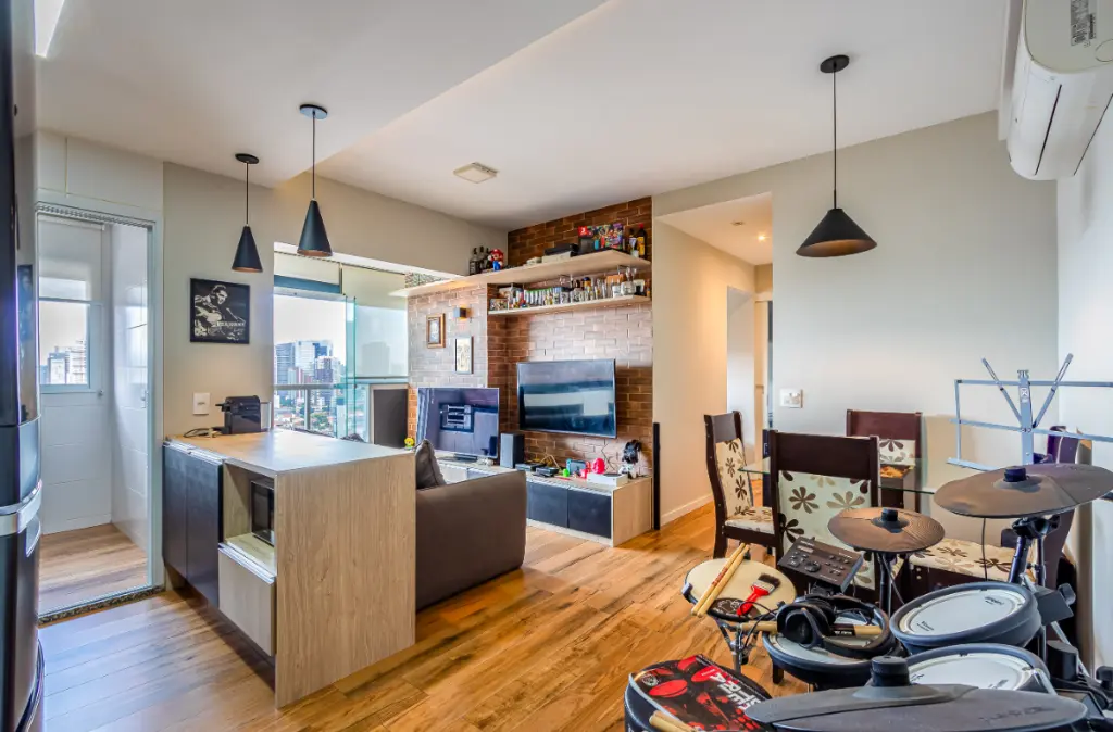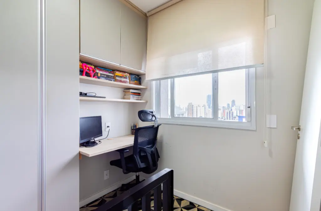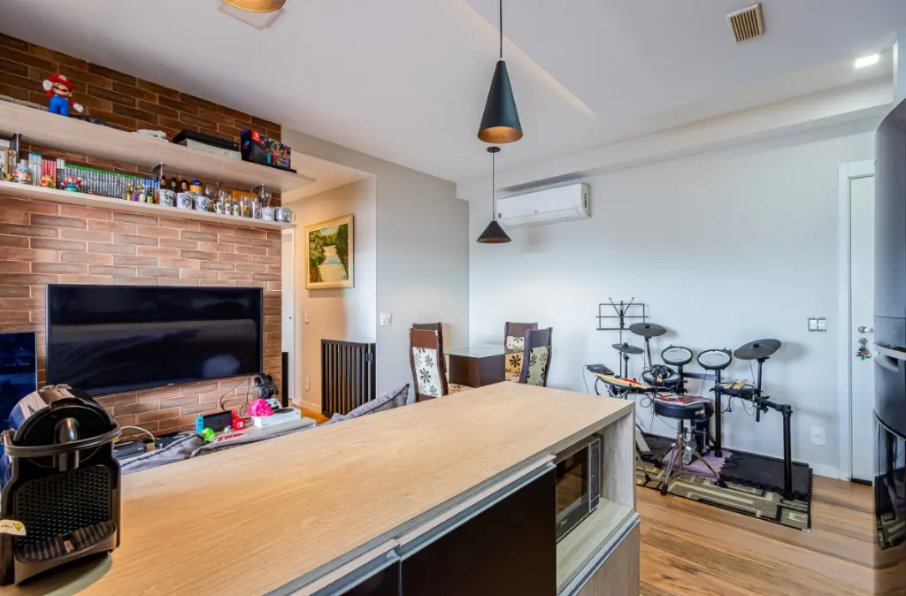 Este apartamento de 53 m² em andar alto oferece uma vista livre e um projeto interno muito bem aproveitado. O living ampliado, integrado à cozinha americana, cria um ambiente moderno, iluminado e convidativo. A varanda envidraçada com estrutura gourmet complementa a área social e torna o espaço ideal para quem gosta de receber com conforto. A cozinha conta com armários planejados, fogão e coifa, enquanto a área de serviço possui bancada em granito e espaço funcional para máquina de lavar. Os acabamentos incluem piso em porcelanato, rebaixamento de teto com iluminação LED e ar-condicionado. A planta inclui dois dormitórios, sendo uma suíte aconchegante, além de um segundo banheiro completo. O imóvel é entregue com marcenaria de excelente qualidade, incluindo um dormitório com bancada planejada perfeita para home office. Com apenas seis anos de uso, o apartamento está impecável, moderno e pronto para morar. O morador conta ainda com uma vaga de garagem livre, sem manobra e sem sorteio.