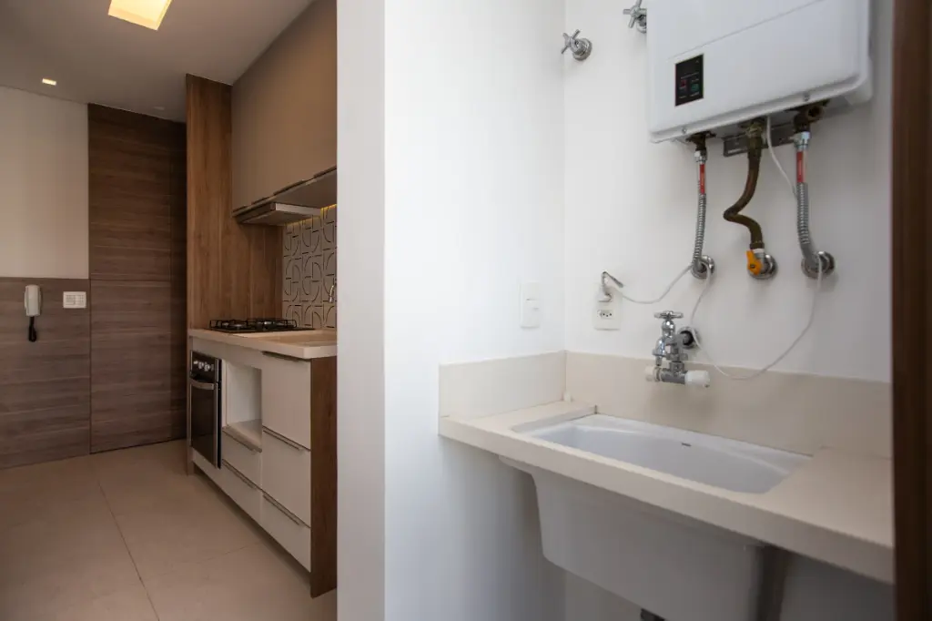 Ao abrir a porta, a sala integrada à cozinha e à varanda cria um ambiente leve, iluminado e perfeito para receber amigos ou simplesmente desacelerar. A cozinha já mobiliada, com cooktop, convida para momentos simples, mas especiais.