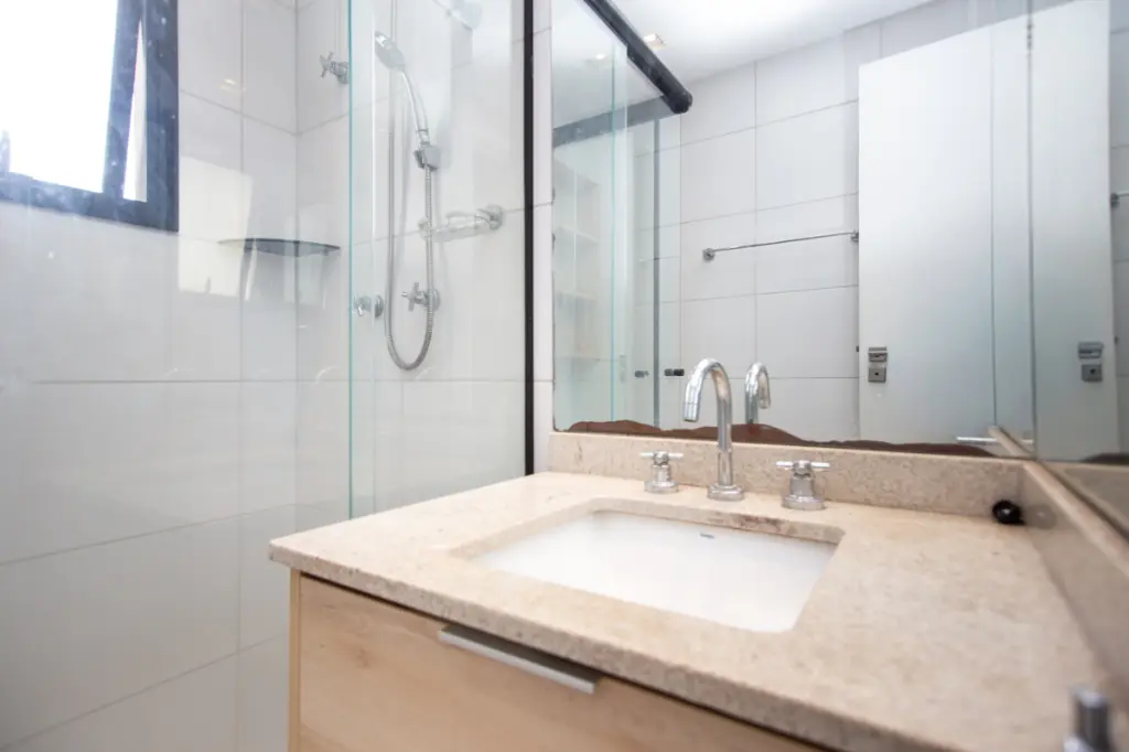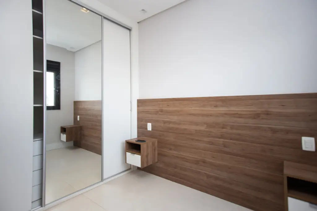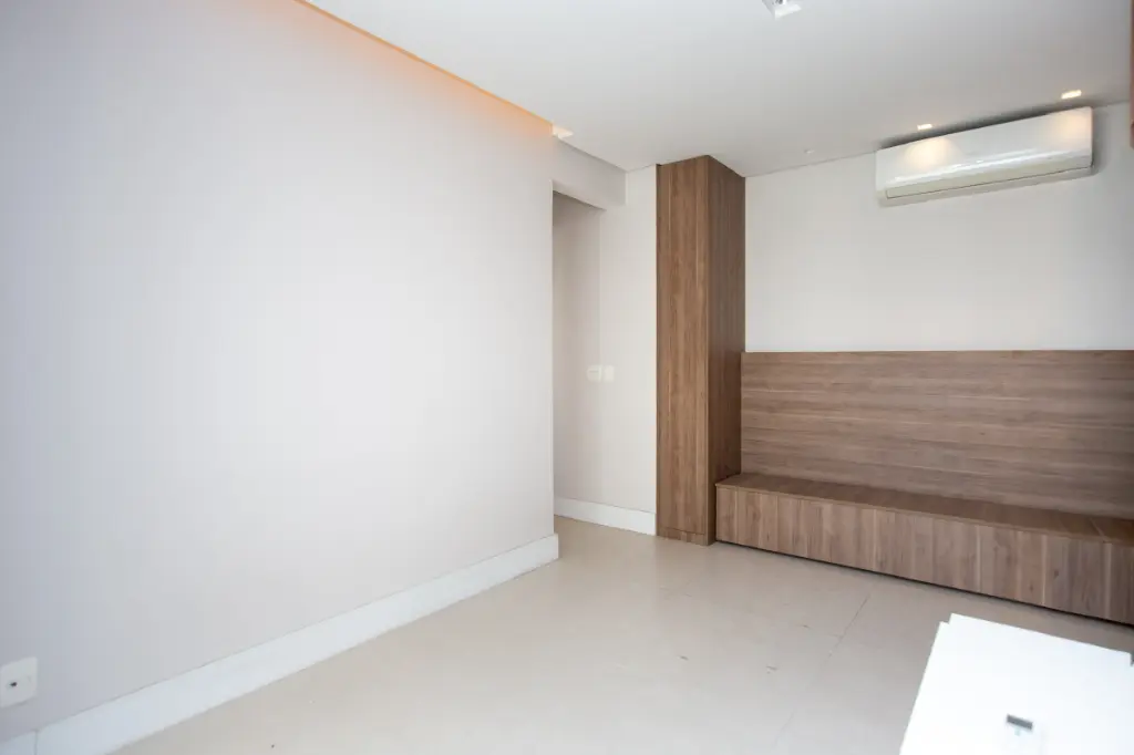 O ar-condicionado na sala e nos dois quartos garante conforto em qualquer estação. São dois dormitórios, sendo uma suíte, além de banheiro social, pensados para oferecer privacidade e praticidade no dia a dia.