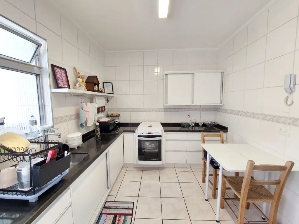 São três dormitórios bem dimensionados, que permitem diferentes configurações de uso, seja para quartos, home office ou espaço de apoio. A área social é agradável e bem iluminada, beneficiada pela incidência do sol da tarde, o que garante ambientes mais acolhedores e confortáveis. A cozinha e os demais espaços contam com infraestrutura, incluindo fiação elétrica reformada, um diferencial importante que traz mais segurança e tranquilidade aos moradores.