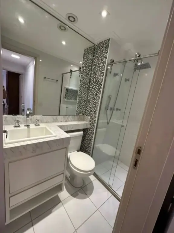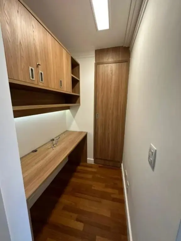 Totalmente reformado, está localizado no penúltimo andar com vista para a piscina e para a área verde. Repleto de armários embutidos em marcenaria e acabamentos de primeira qualidade. Conta com 3 dormitórios amplos, sendo uma suite, banheiro social servindo dois quartos, sala ampliada dois ambientes, escritório, cozinha com acesso direto á area da sacada gourmet, sacada com churrasqueira, lavabo e área de serviço isolada com banheiro de serviços.