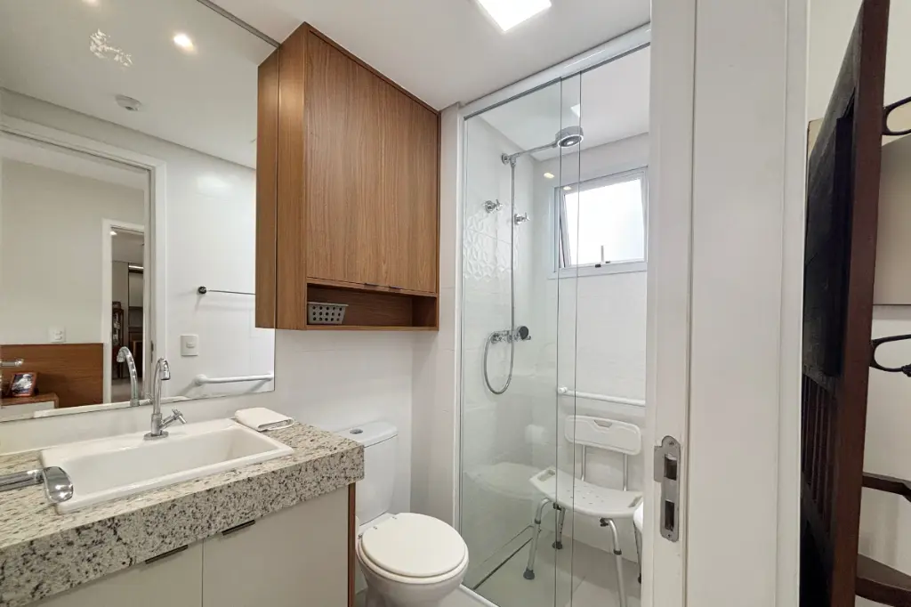 Apartamento de 81m² à venda no 5º andar do Condomínio Vila Nova Sabará, localizado na Praça Marajoara, zona sul de São Paulo. O imóvel conta com 3 dormitórios, sendo 1 suíte, oferecendo excelente iluminação natural, boa ventilação e uma planta bem distribuída. A suíte é ampla, aconchegante e ideal para o descanso, com armários e banheiro privativo bem ventilado.