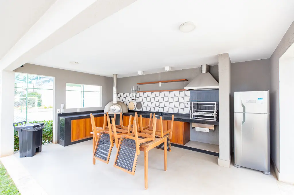 O condomínio oferece infraestrutura completa de lazer e segurança, incluindo portaria 24 horas, piscinas adulto e infantil, área gourmet com churrasqueira, academia equipada, salão de festas, playground, quadra poliesportiva, pet place, bicicletário, mercadinho, coworking e salão de jogos, além de áreas verdes para caminhadas e convivência.