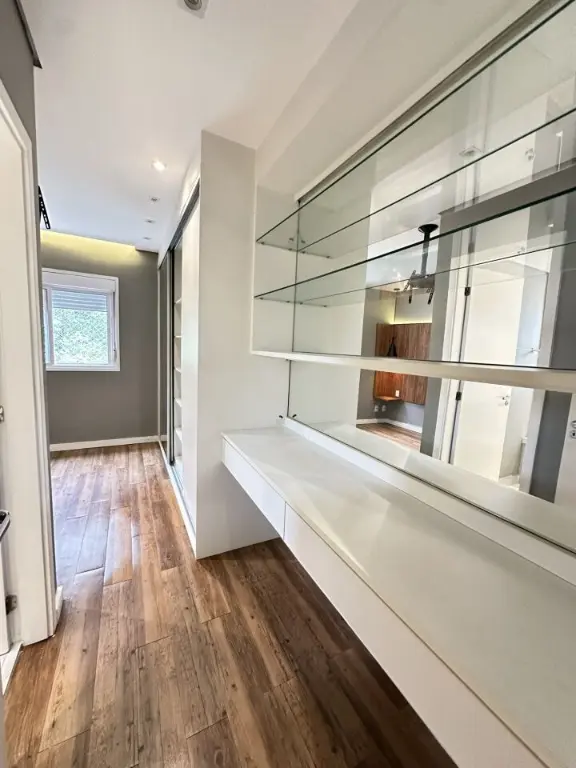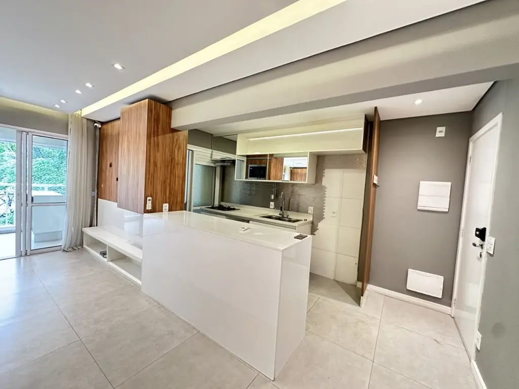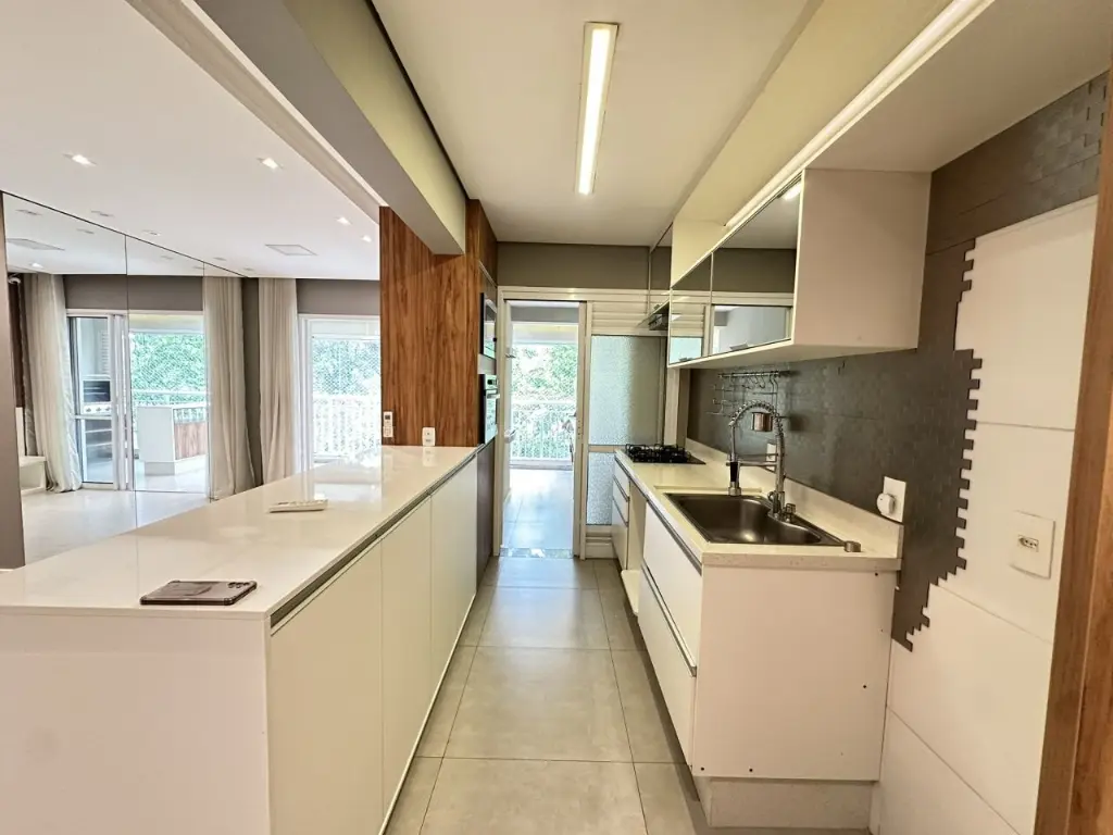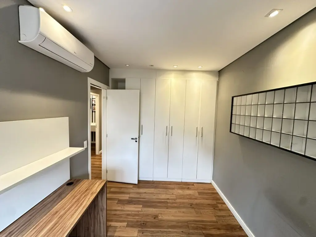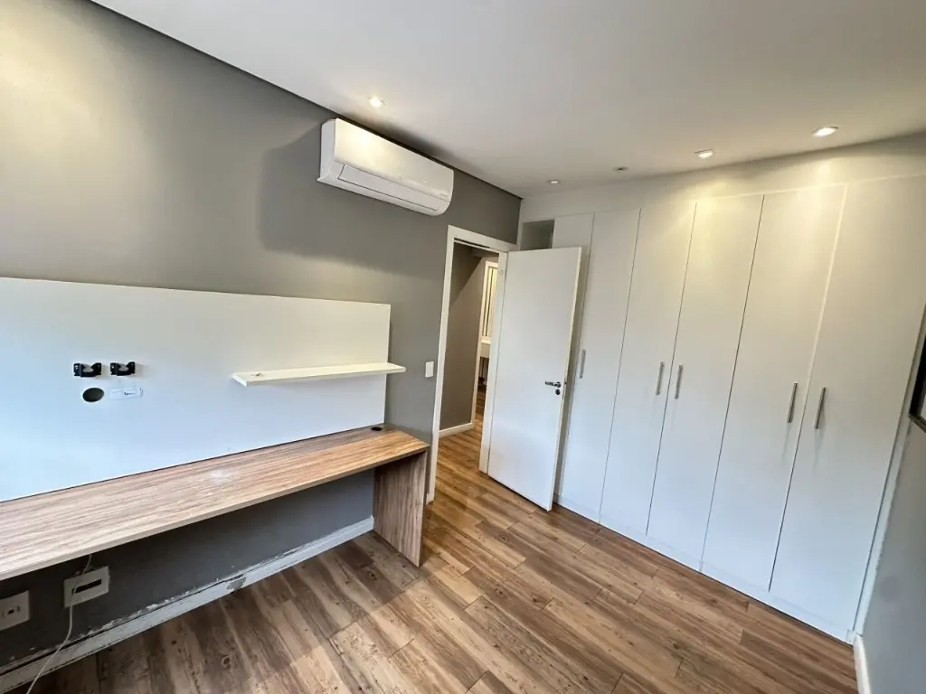 Vista livre e varanda goumert incrível, ar condicionado na sala, suite, dormitório 2 e varanda. Teto rebaixado com LED em todos os ambientes, bem como armários embutidos de qualidade e excelente estado.