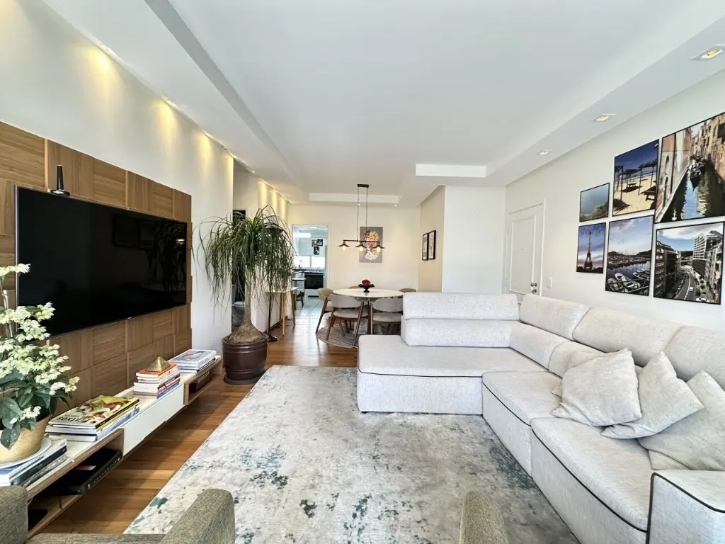 Apartamento em região privilegiada e linda vista, 117 metros 3 quartos 2 suítes, 3 vagas de garagem fixas + deposito no subsolo, lavabo, sala para dois ambientes, cozinha com armários planejados, despensa, dependência de empregada.