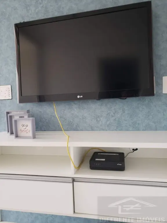 Sala confortável com rack e TV Smart