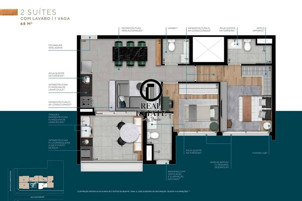 Este apartamento moderno, recém-entregue em 2023, está estrategicamente localizado no vibrante bairro Jardim das Acácias, em São Paulo. Com 69 metros quadrados bem distribuídos, oferece conforto e praticidade, com vista privilegiada do 18 andar. Com dois dormitórios, dois banheiros e um lavabo, é perfeito para quem busca qualidade de vida. A infraestrutura inclui piscina, jardim, academia, espaço gourmet, playground, bicicletário e segurança 24 horas, tudo pensado para proporcionar bem-estar e conveniência. Preço e disponibilidade do imóvel sujeitos a alteração sem aviso prévio.