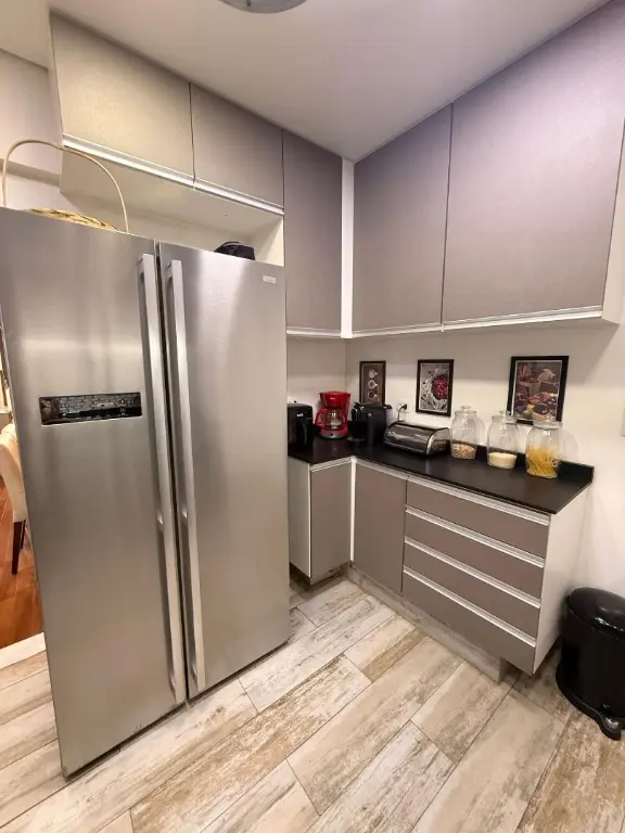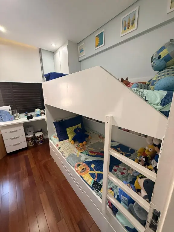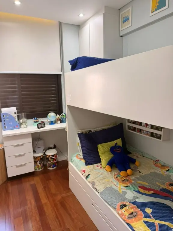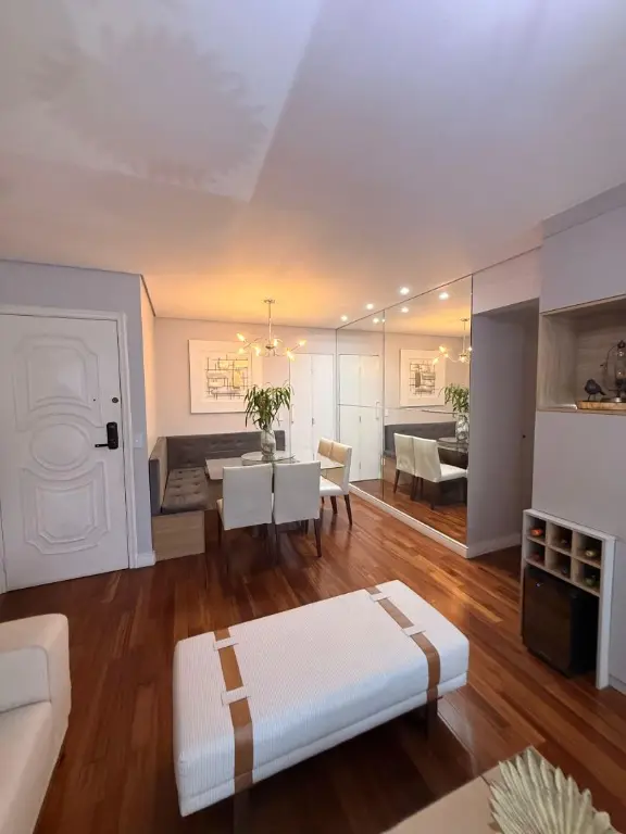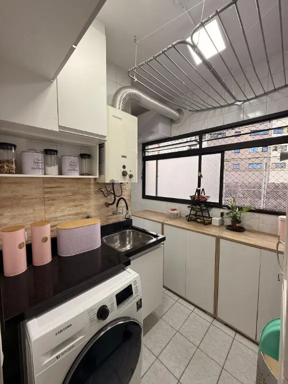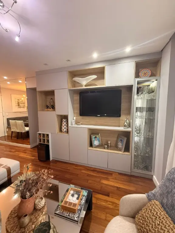 O apartamento se destaca pelos seus diferenciais modernos: trata-se de um imóvel com tecnologia de automação, permitindo o controle da iluminação por comando de voz, além de contar com ar-condicionado em todos os dormitórios e aquecimento de água em todos os pontos, proporcionando ainda mais conforto. A cozinha e os quartos possuem armários planejados, otimizando espaço e organização.
