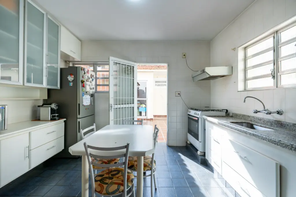 O imóvel conta com três dormitórios bem distribuídos, oferecendo conforto e privacidade para toda a família. A área social é composta por uma sala de estar, ideal para receber amigos e familiares, além de sala de jantar com acesso à cozinha, que possui armários planejados, otimizando espaço e funcionalidade. Para maior comodidade, a casa possui também lavabo, banheiro social e uma prática área de serviço.