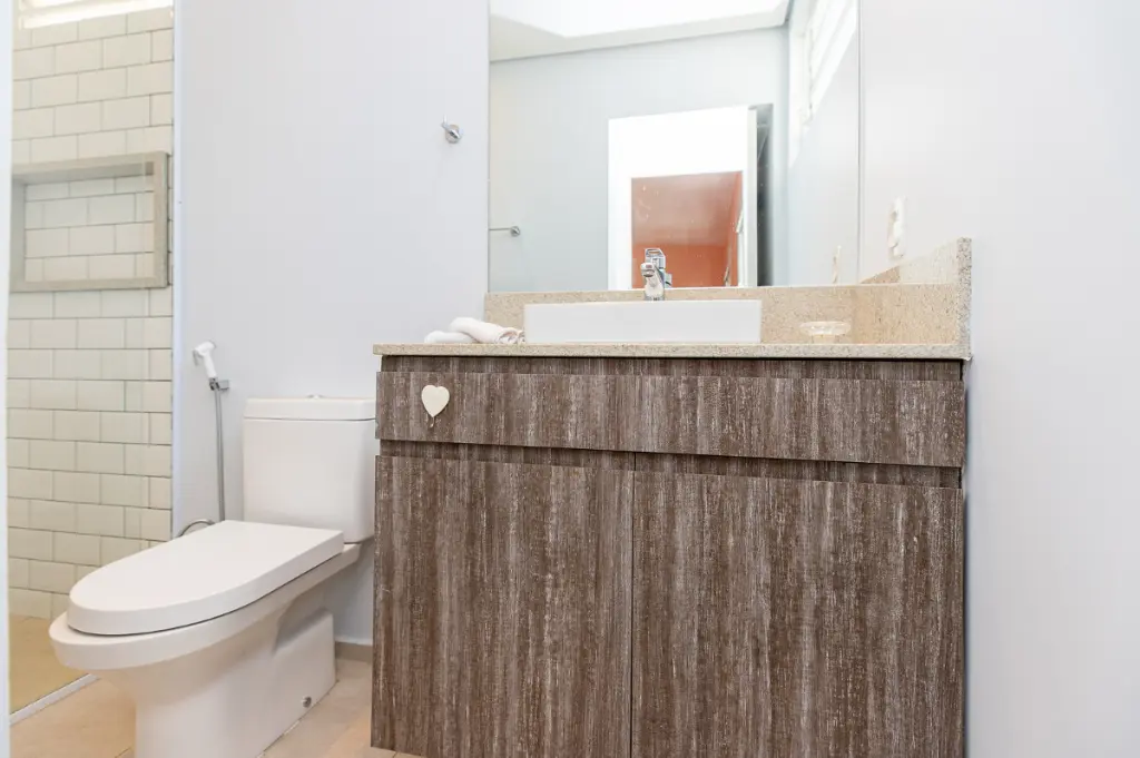 Ao todo, são quatro banheiros elegantes e bem distribuídos, um lavabo, tudo com acabamentos de qualidade e um design contemporâneo. Outro grande diferencial é a garagem com três vagas, proporcionando comodidade e segurança para sua família.
