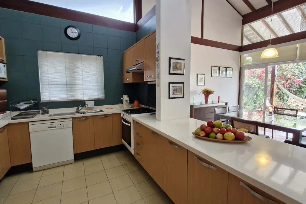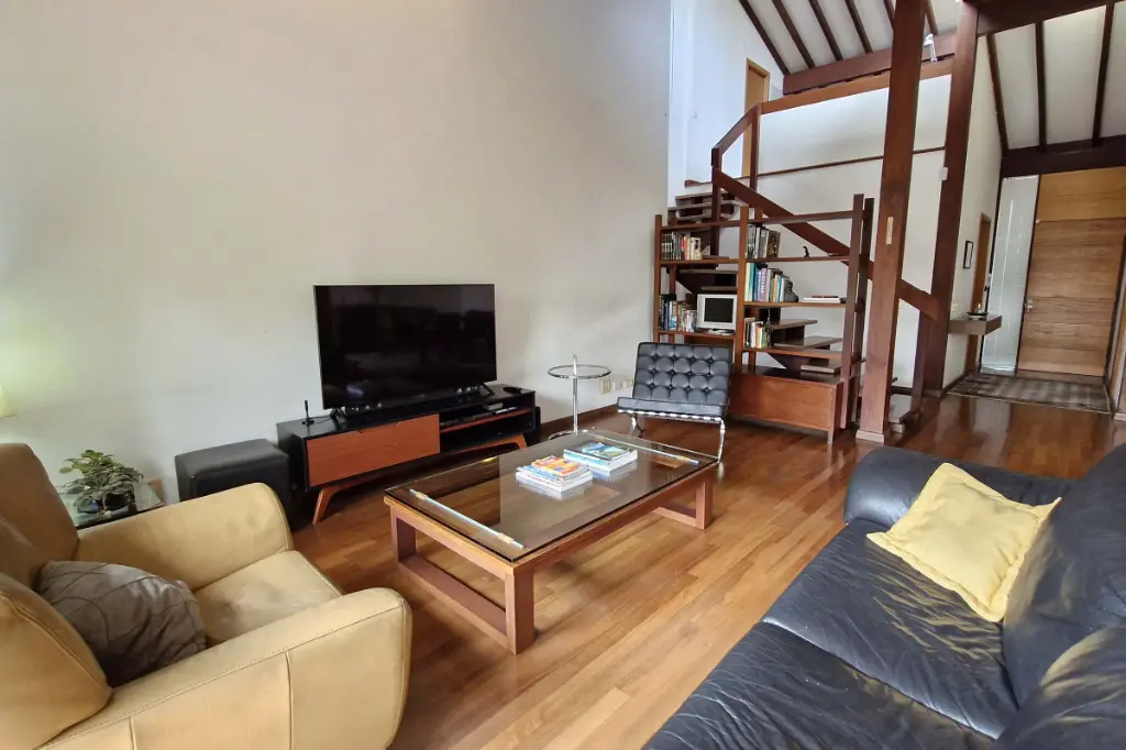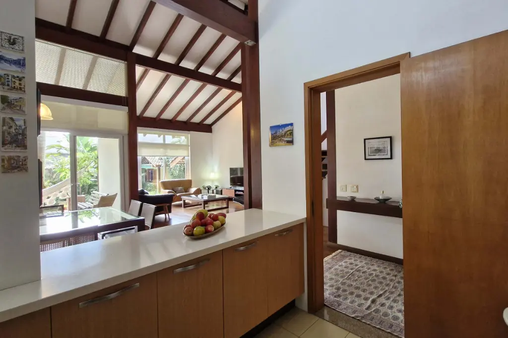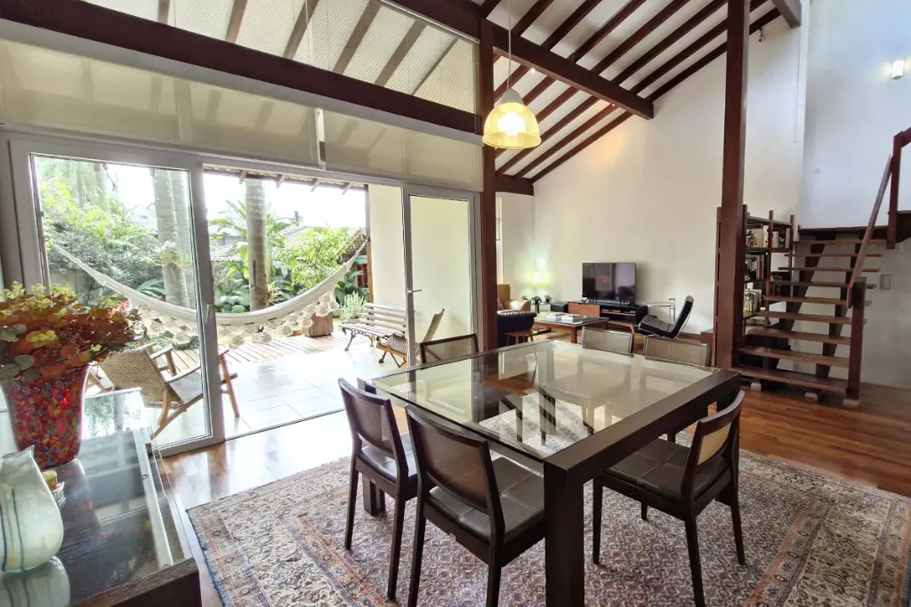O imóvel conta com sala de jantar integrada à cozinha americana, rica em armários planejados, além de uma ampla sala de estar com varanda e uma linda vista para o verde. Dispõe ainda de lavabo, banheiro social, duas suítes climatizadas com ar-condicionado, sendo a suíte principal com closet e janela acústica com persiana motorizada. No mezanino, há um espaço ideal para escritório ou home office.