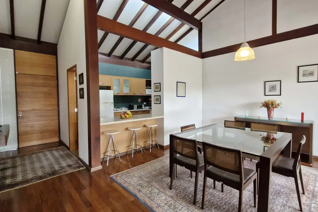 Com terreno de 543 m² e 256 m² de construção, a casa possui arquitetura em estilo europeu moderno, aconchegante e atemporal, projetada e construída pela renomada Ita Construtora, referência mundial em estruturas de madeira. A construção utiliza madeiras de lei de altíssima qualidade e durabilidade, garantindo elegância e robustez.