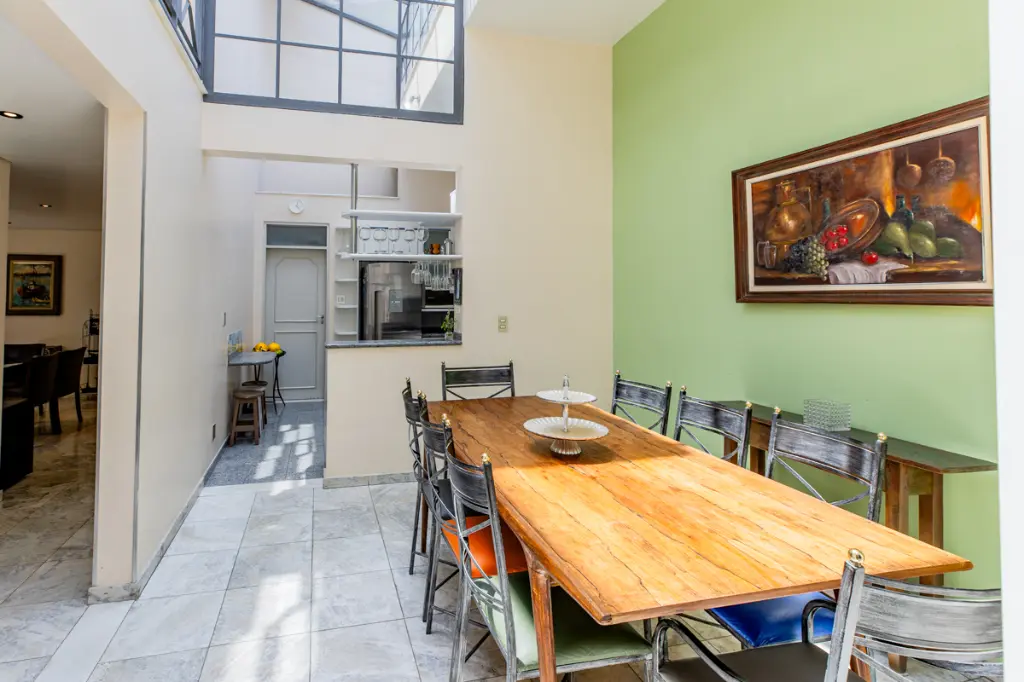 Envolvida pela tranquilidade de uma rua arborizada, a casa oferece um total de 25 cômodos, incluindo 4 amplas suítes, sendo todos arejados e bem iluminados, 7 banheiros modernos e 2 lavabos elegantes. O ambiente perfeito para receber amigos e família com as áreas de Sala de Almoço e Sala de Jantar integradas para criar experiências memoráveis.