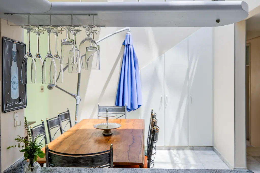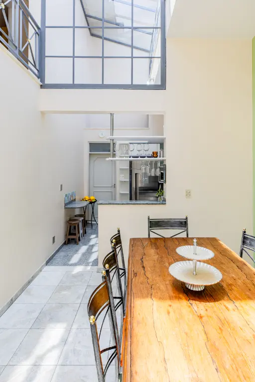 Ambientes sociais integrados, incluindo sala de jantar e sala de almoço, ideais para receber com elegância