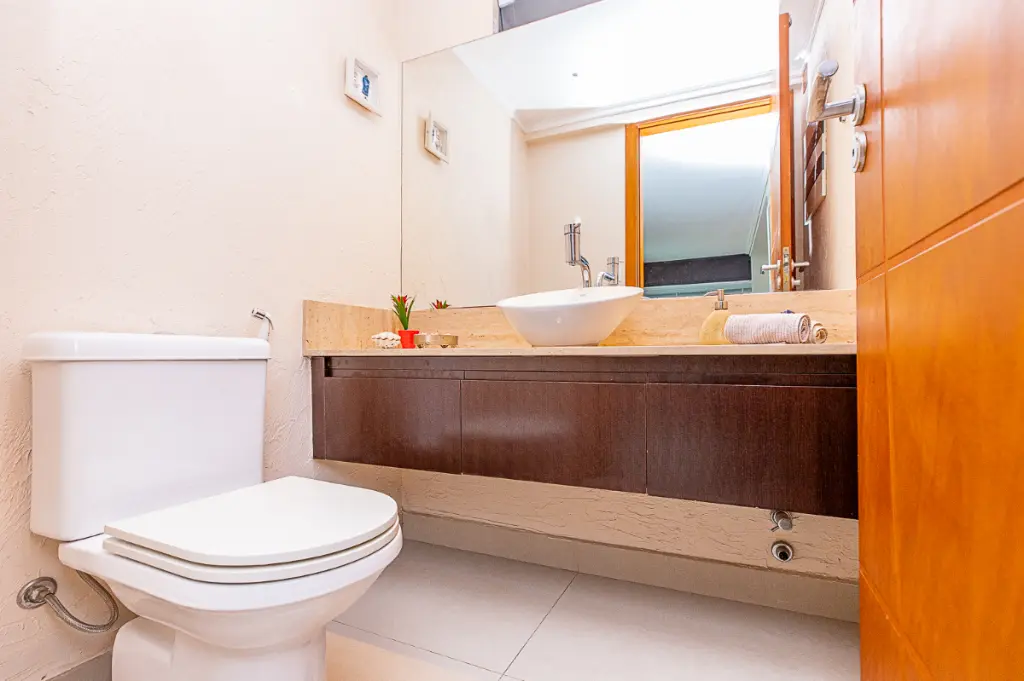 Dois dormitórios com um banheiro ficam localizados no piso térreo, o que é um grande diferencial.